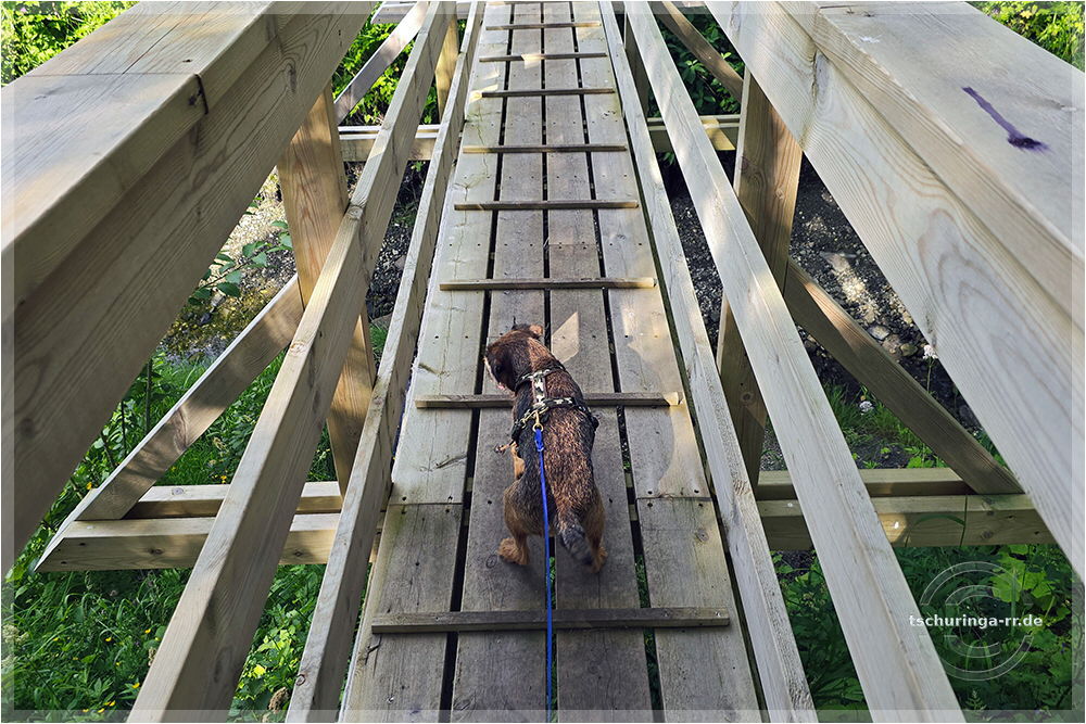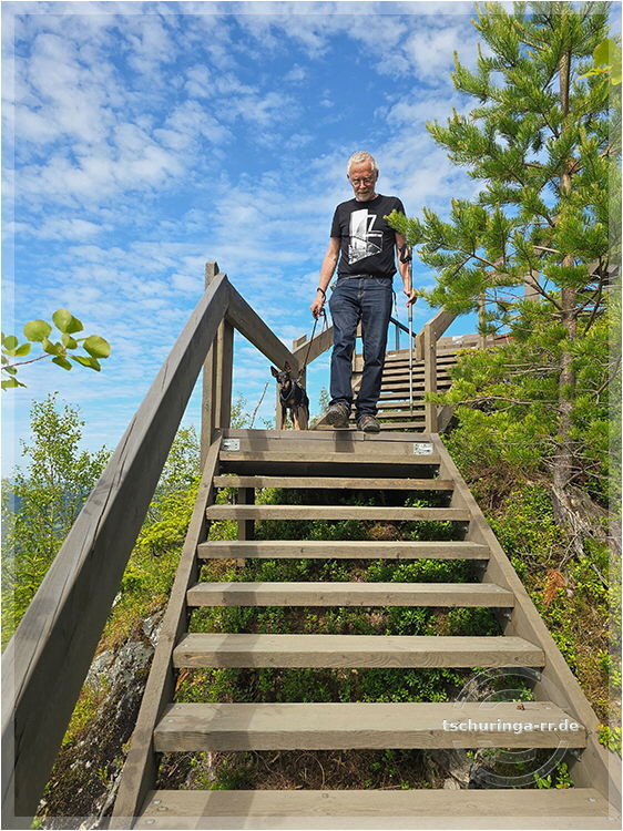 Über die Holztreppen geht es einen Teil der Strecke wieder runter |