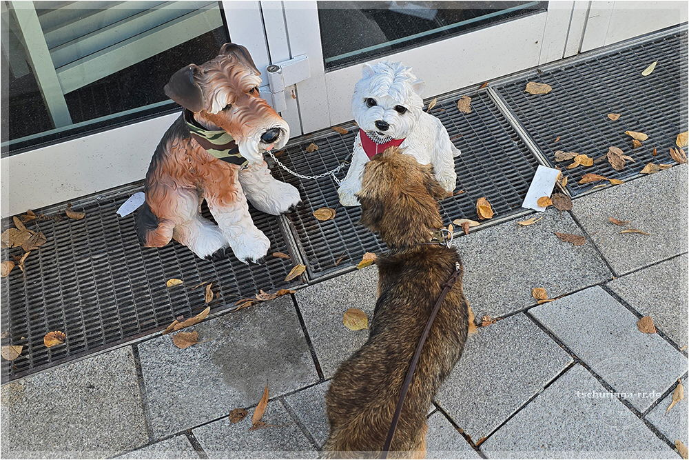 Wir kaufen kurz beim Aldi ein und fahren dann nach Marxen, wo Unas Züchter wohnen. Dort sind zwei Hündinnen tragend und wir wollen "dicke Bäuche gucken". Auf einem Platz neben einer Holzscheune können wir parken. Dann laufen wir erst einmal mit den Hunden los. Später kommen Beate und Karsten samt Campingstühlen zum Wohnmobil und es gibt Apfelkuchen, den ich gestern gebacken habe. Wir brechen später zu einer zweiten Hunderunde auf. Abends kommen Beate und Karsten zum Wohnmobil. Wir killen zwei Flaschen Wein und klönen bis spät in die Nacht. Una und ihr früheres (Züchter)Frauchen kuscheln stundenlang miteinander. |