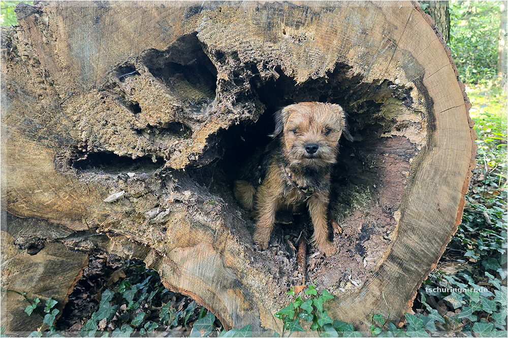 Wenn keine Fuchsbaulöcher zu finden sind, muss man halt mit Löchern in Baumstämmen vorlieb nehmen. |