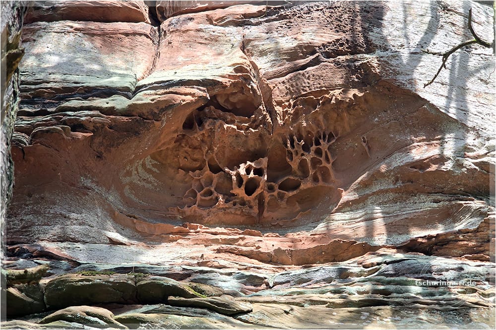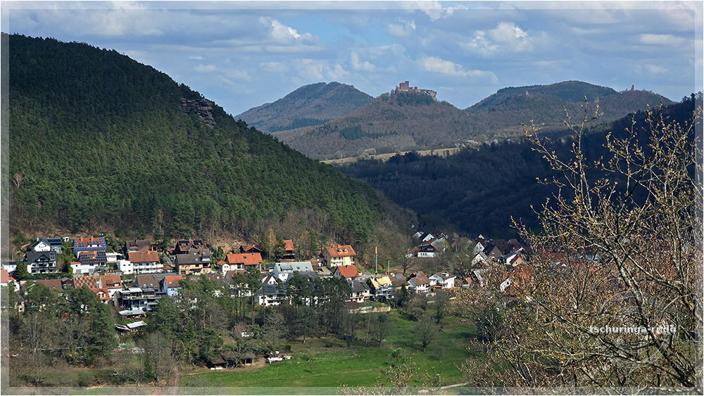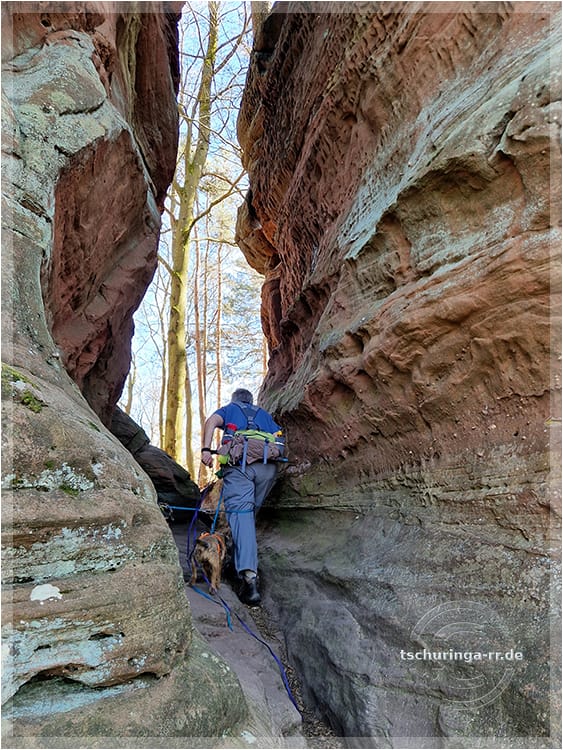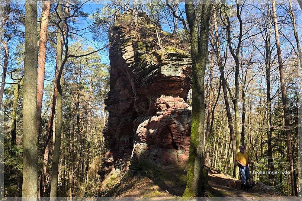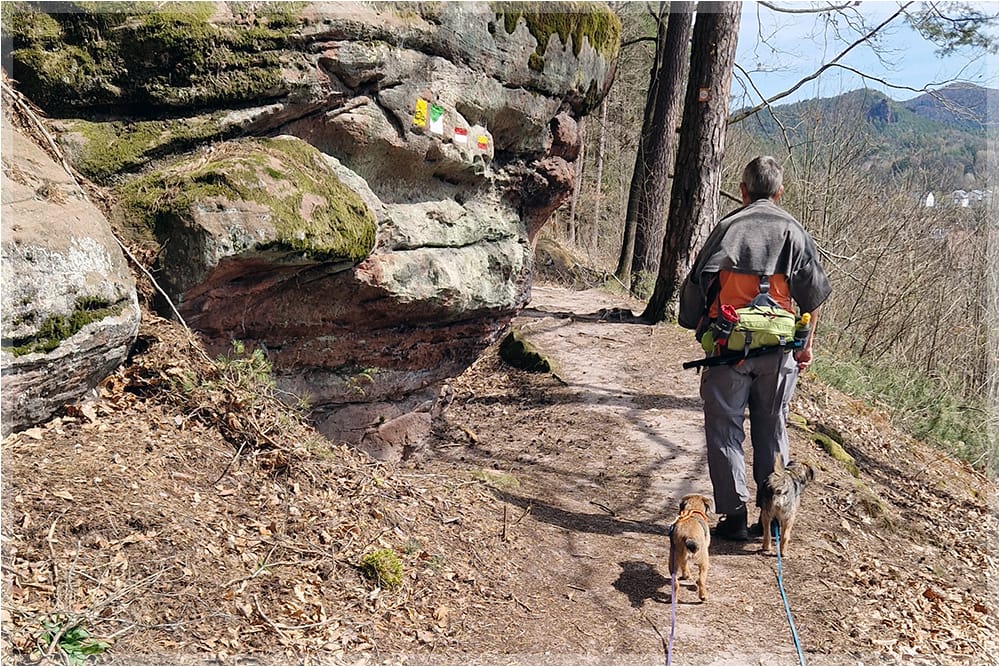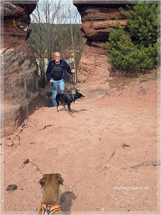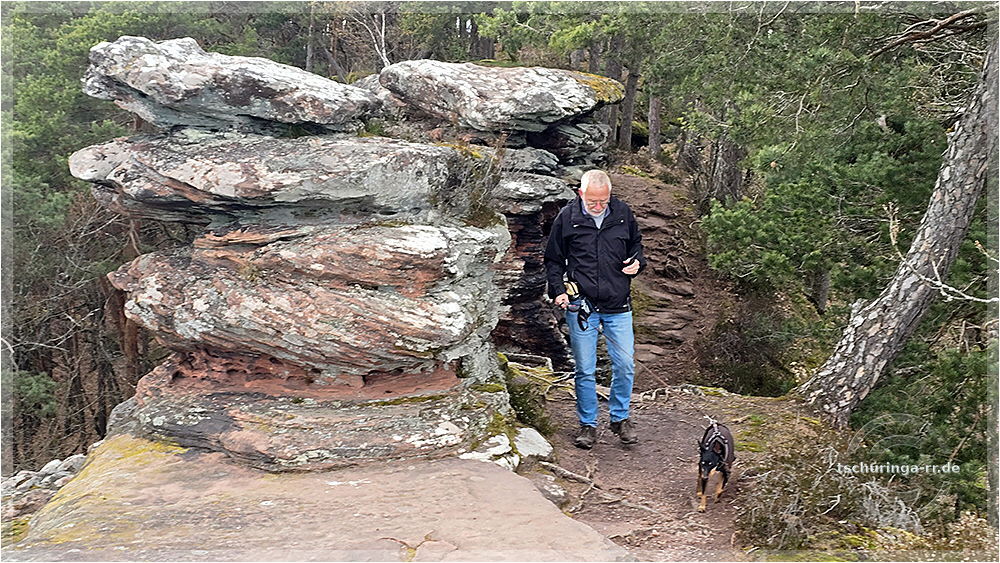 Wir fahren bei bestem Wetter ins Dahner Felsenland und erwandern einen Teil des Dahner Felsenpfads. Der gesamte Pfad ist über 12 Kilometer lang und für Tay noch zu weit. Wie üblich werfe ich die Besucher meiner Homepage mit Felsenbildern zu. |