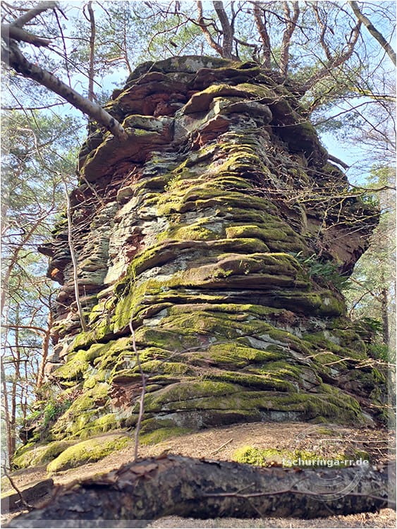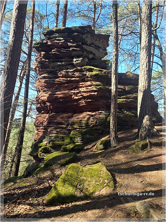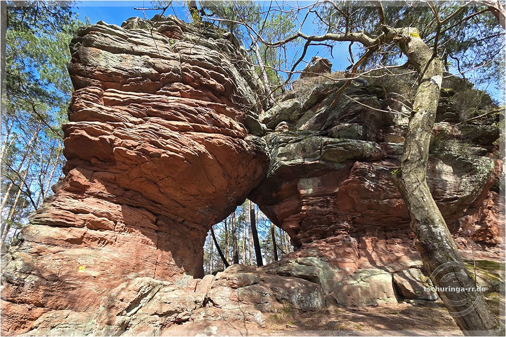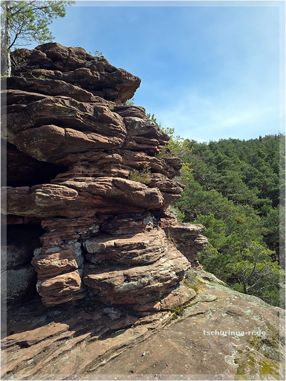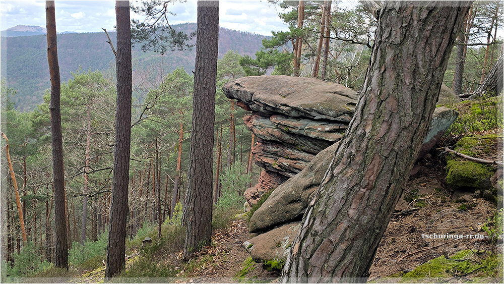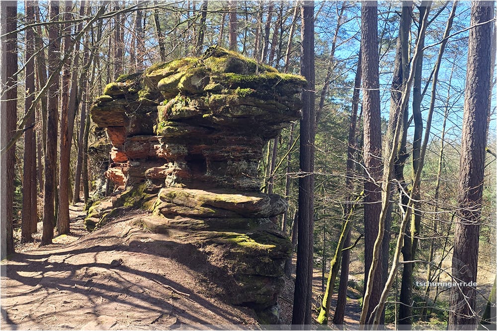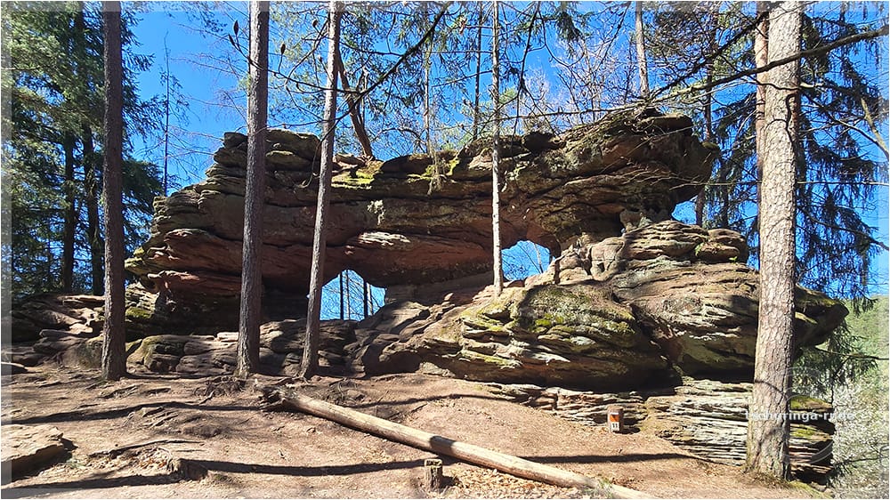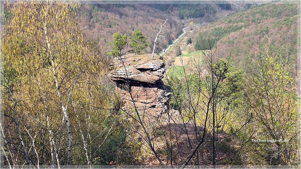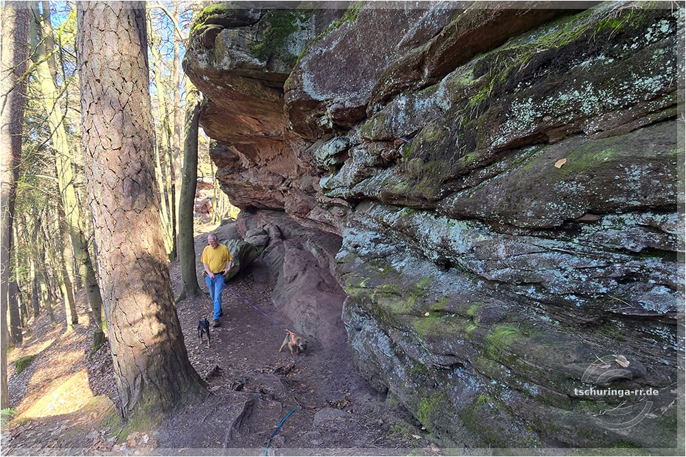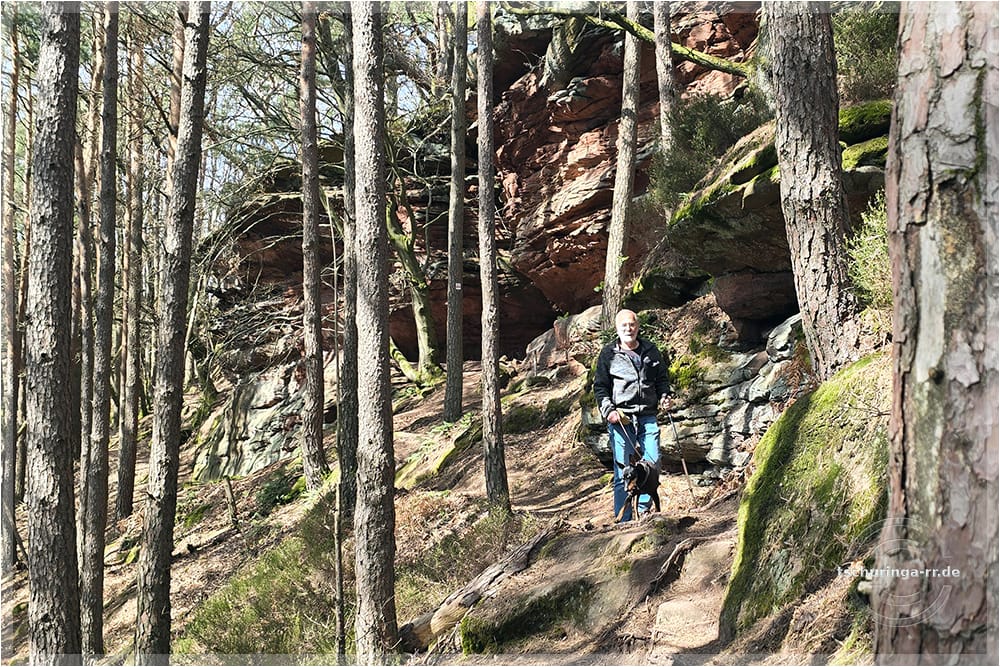 Vormittags wandere ich zum nahegelegenen Edeka und kaufe Brötchen für mittags. Am frühen Nachmittag fahren wir fünf Kilometer und laufen einen Teil der Geiersteine-Tour. Gut sechs Kilometer geht es entlang der beindruckenden Felsformationen. Die Geiersteine, der Runde Hut und die Hornsteinfelsen sind eine Wanderung wert. |