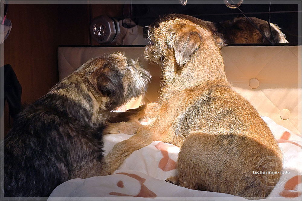 Ich gehe aus dem Wohnmobil und was sehe ich? Einen Border und auch noch eine Halbschwester von Yukon. Manchmal ist die Welt doch klein. Mittags starten wir ab Stellplatz zum Hauensteiner Schusterpfad. Dem folgen wir eine Weile. Der Rückweg führt uns über den Spazierwanderweg Weimersberg. Für das Abendessen gönnen wir uns was von der nahgelegene Pizzeria/Döner. So muss ich mal nicht kochen. Auch mal schön. |