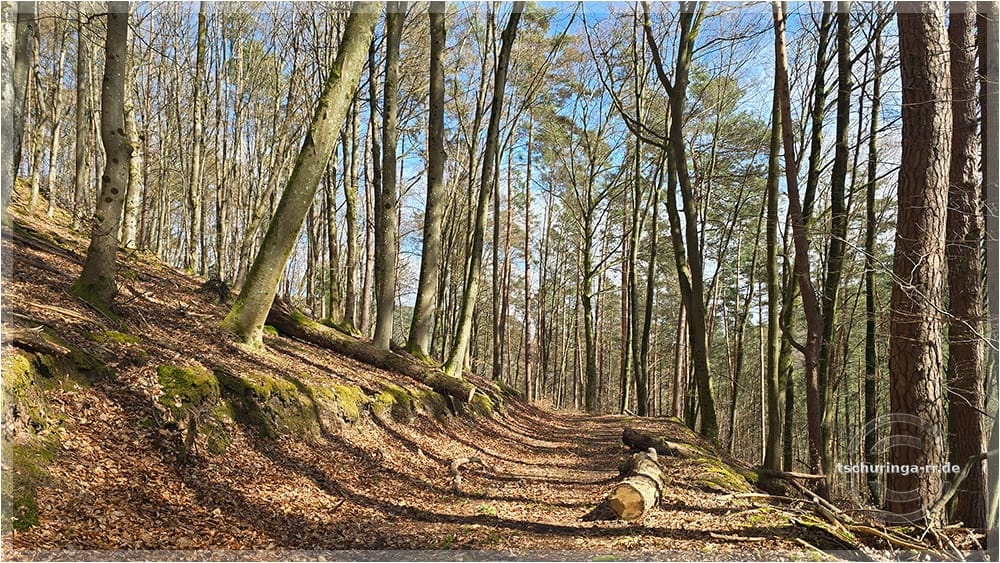 Das Wichtigste zuerst: Mein Knie ist wieder okay. Auf der heutigen Tour über den Dimbacher Buntsandstein Höhenweg sind einige Höhenmeter, etliche Wurzeln und Felsen zu überwinden und ich habe keinerlei Probleme mehr. Es ist eine schöne Tour bei zwar meist bedecktem Wetter, aber ab und zu guckt auch mal die Sonne hervor. Wir laufen zwar nur dreieinhalb Kilometer, sind aber über zwei Stunden unterwegs und es gibt mal wieder eine gewaltige Bilderflut. |