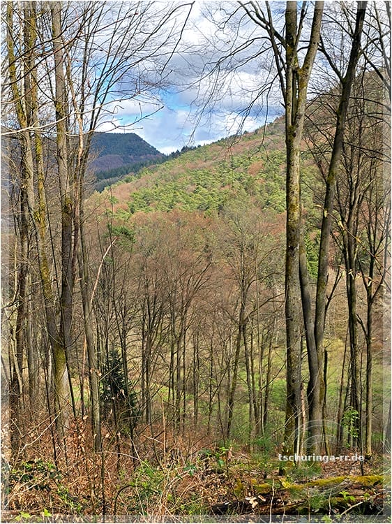 Vormittags kaufen wir ein. Am Karsamstag ein nicht ganz einfaches Unterfangen. Selbst mit unserem mickrigen Panda finden wir fast keinen Parkplatz. Heute regnet es immer wieder. Unsere Nachbarn starten eine Weile früher als wir und werden ordentlich nass. Wir schaffen fünfeinhalb Kilometer in trockenen anderthalb Stunden auf dem Spirkelbacher Höhenweg. |