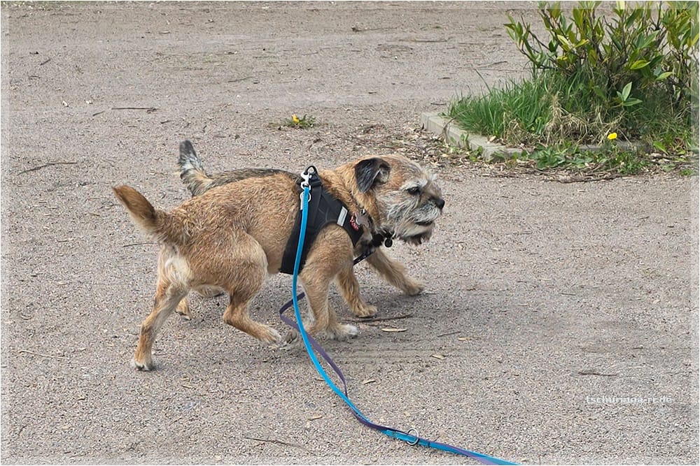 | Tay ist zurückgelaufen, um Herrchen und Lennox abzuholen. Wobei sie auf unser Arschlochköterchen wohl gut verzichten könnte. |