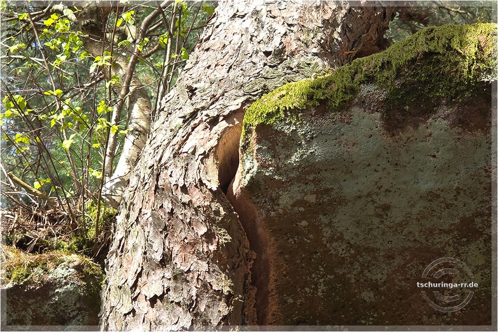 | Links der Baum, rechts der Felsen. Links unten ist auch Felsen. |
