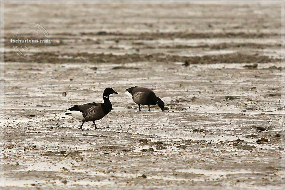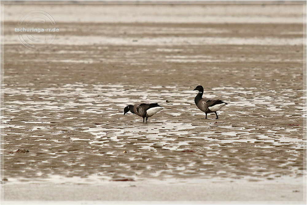 | Ringelgänse bei Ebbe auf Futtersuchen an der Passage du Gois | ||
