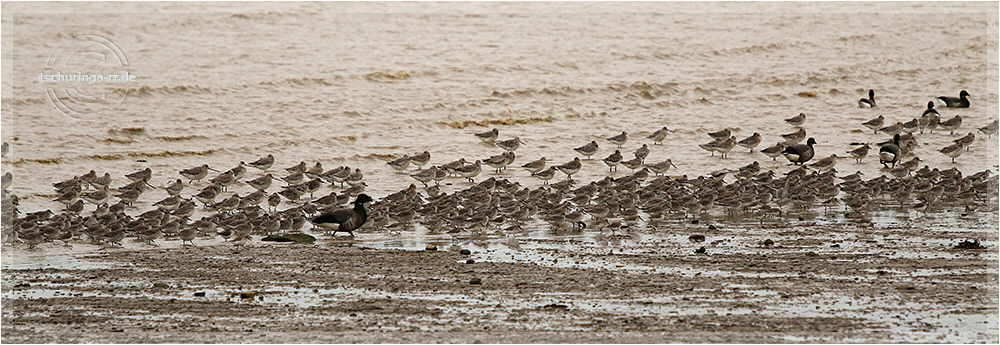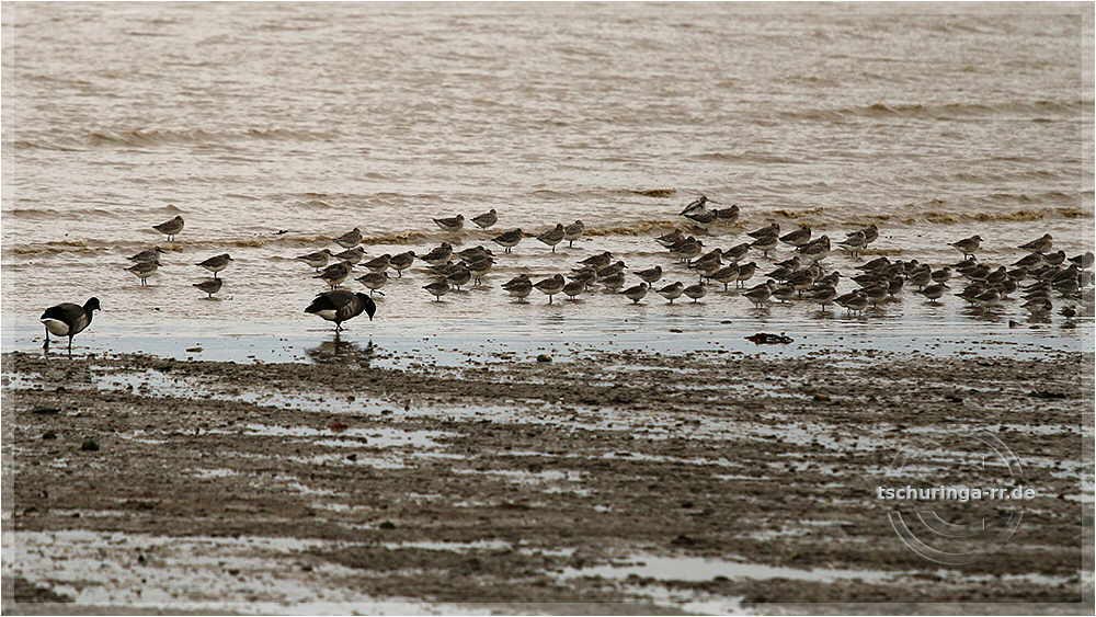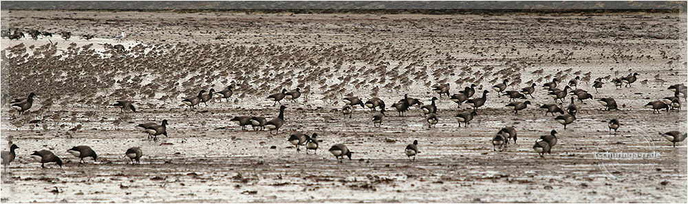 | SRingegänse und Strandläufer an der Passage du Gois. | ||