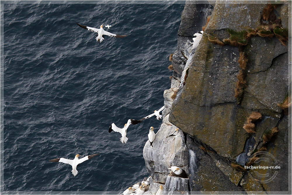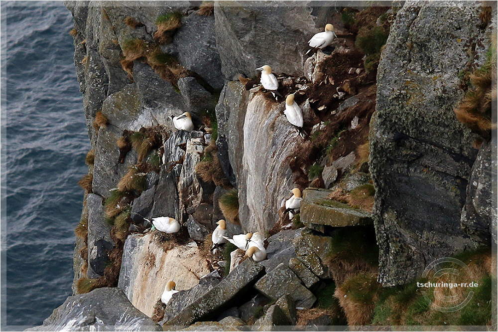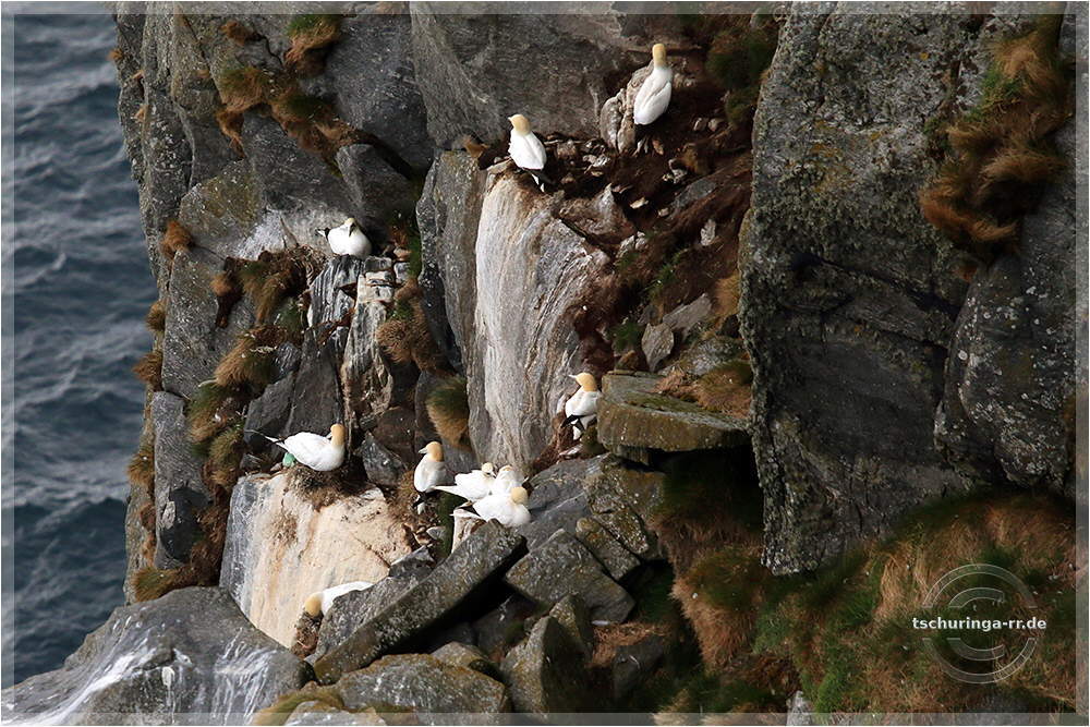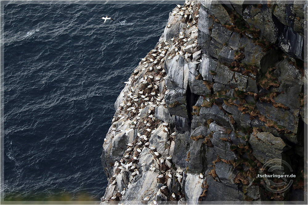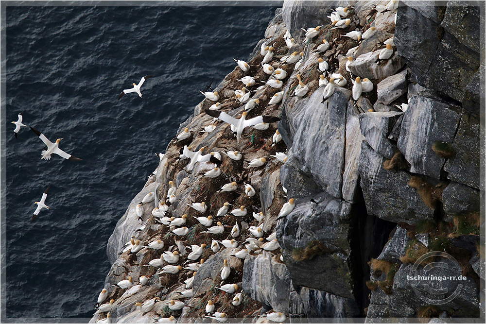 Basstölpel auf der Vogelinsel Runde. | ||