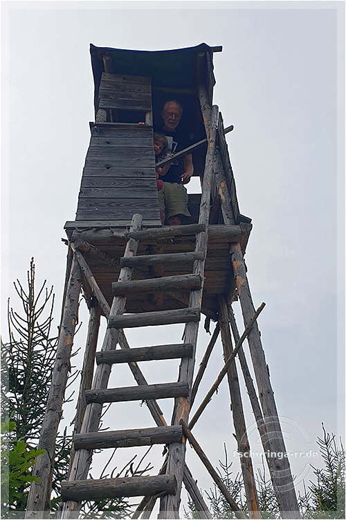 Auf einer Rund begleitet uns Rieke, die natürlich mit dem Opa den Hochstand erklimmen muss |