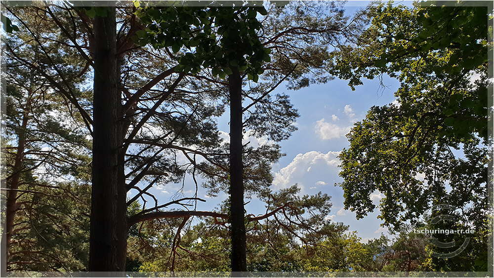 Heute besteigen die "Himmelsleiter" beim Walderlebnispfad Kirnberg. Wir laufen eine schöne Runde von knapp vier Kilometern, die für mich dann doch noch unerwartet länger wird, weil ich den Wohnmobilschlüssel bei der Pipipause vergessen habe und so muss ich noch mal gut einen Kilometer wieder zurück, um den zu holen. Glücklicherweise liegt er noch genau dort, wo ich ihn hingelegt hab. Puh, noch mal gut gegangen. |