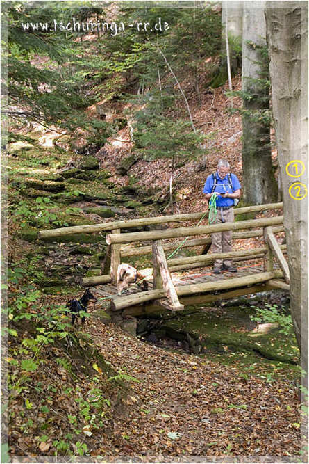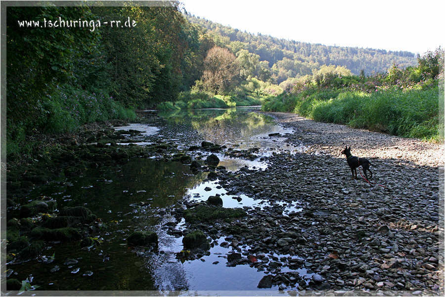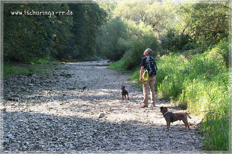 | Im Bett der Donau unterwegs, auf dem Weg zur Donauversickerung bei Immendingen. | ||