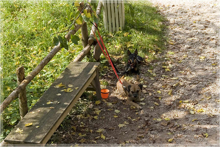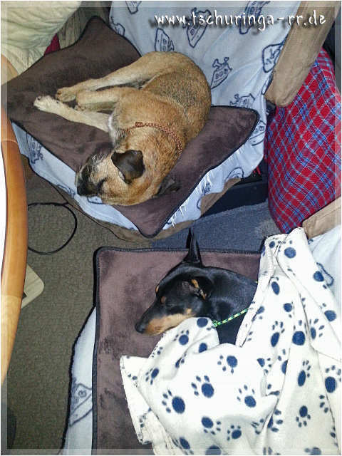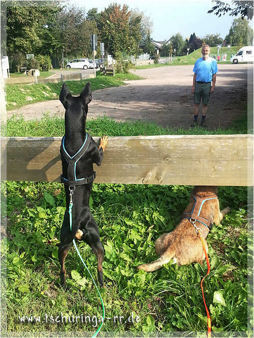 | Und schon wieder warten. Herrchen muss nach dem Weg gucken. | "Herrchen kommt, Herrchen kommt, Herrchen kommt!!!!" | ||
