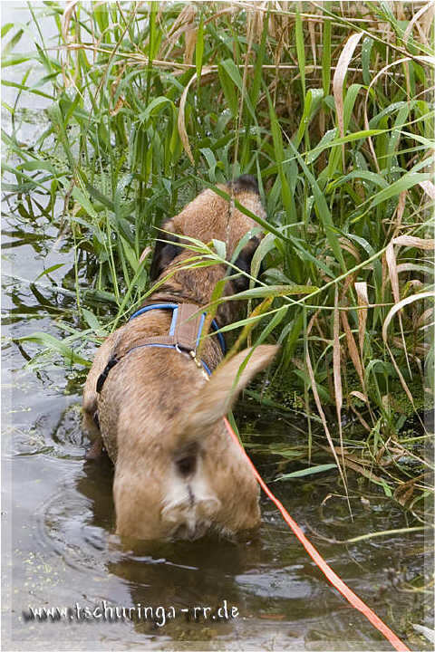 | Donau-Biotop mit Terrier | Yukon mampft Schilf | ||