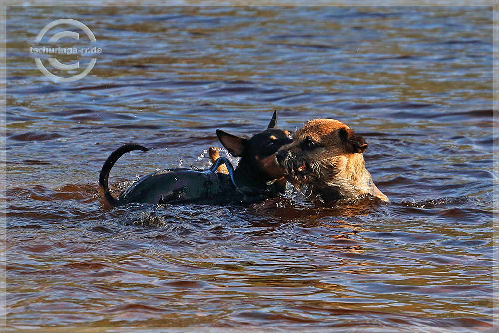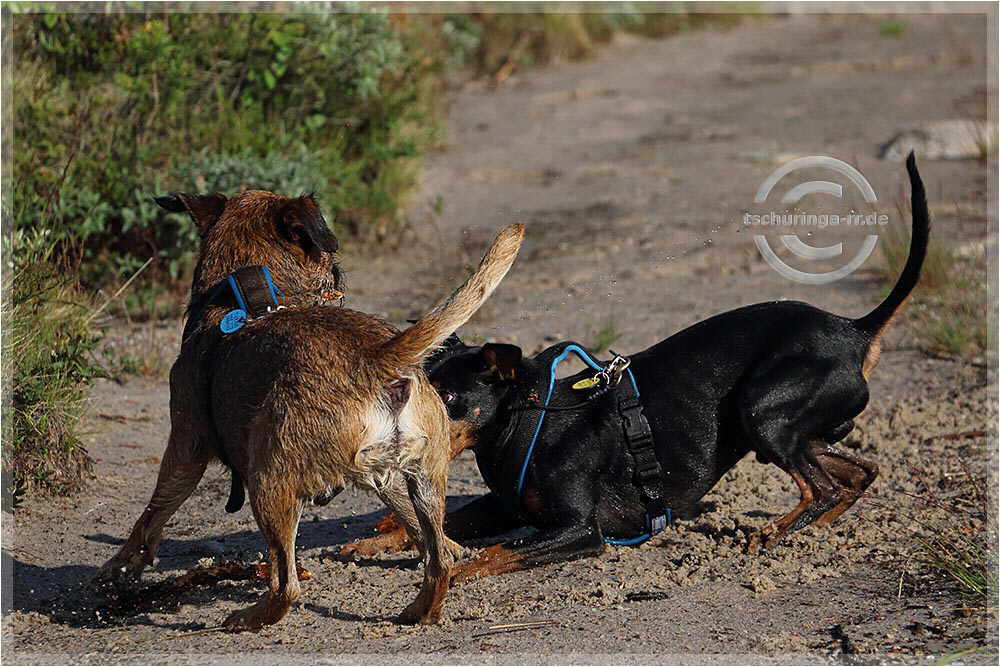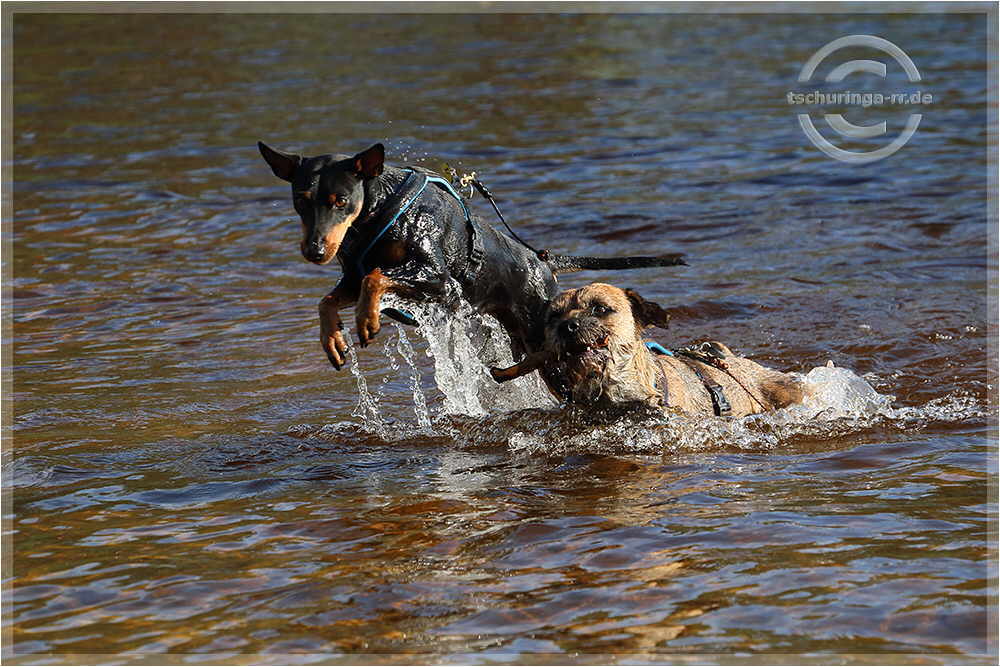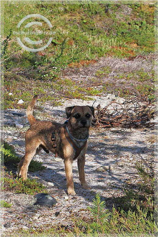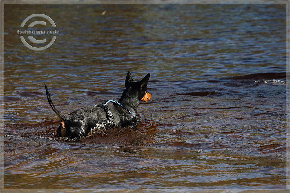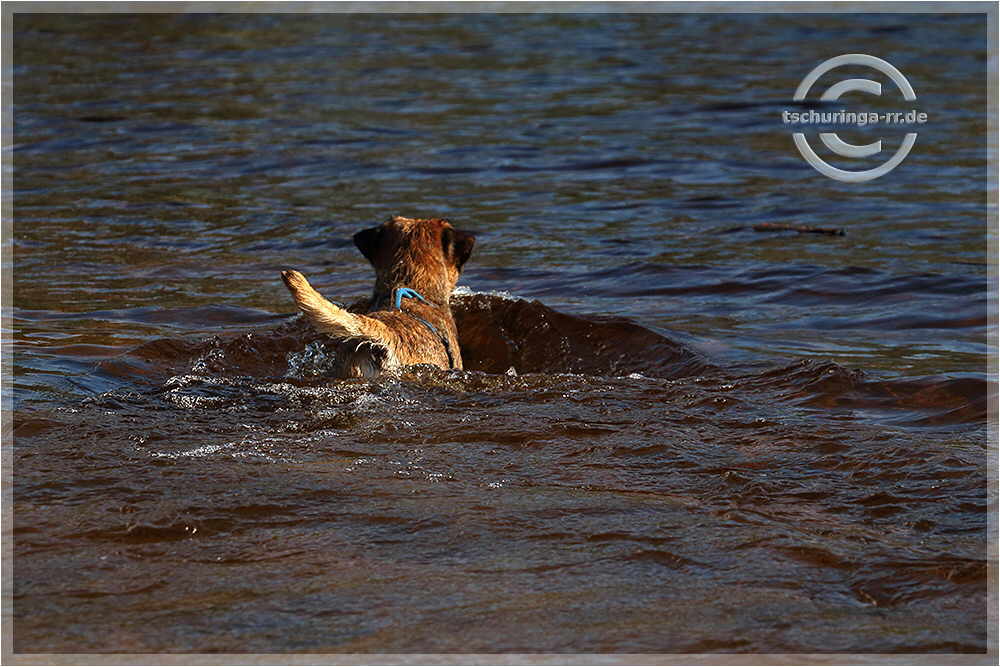 | Lennox sieht den Otter noch früher und gibt Vollgas. Gsd. ist er an der Leine. | |||