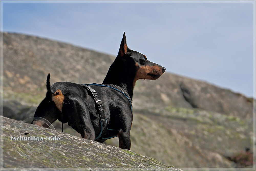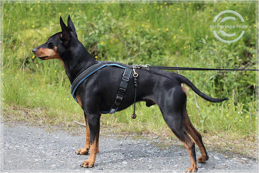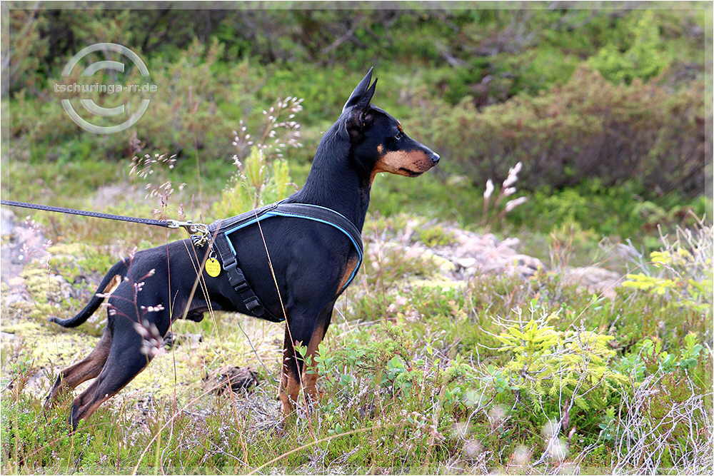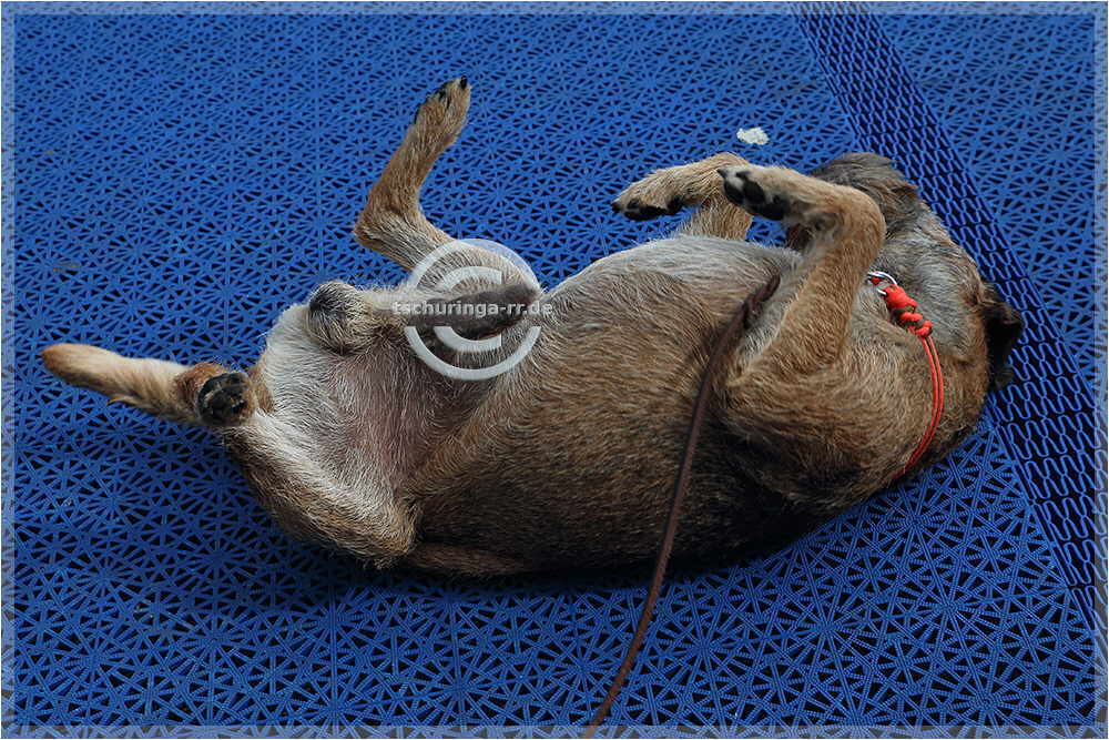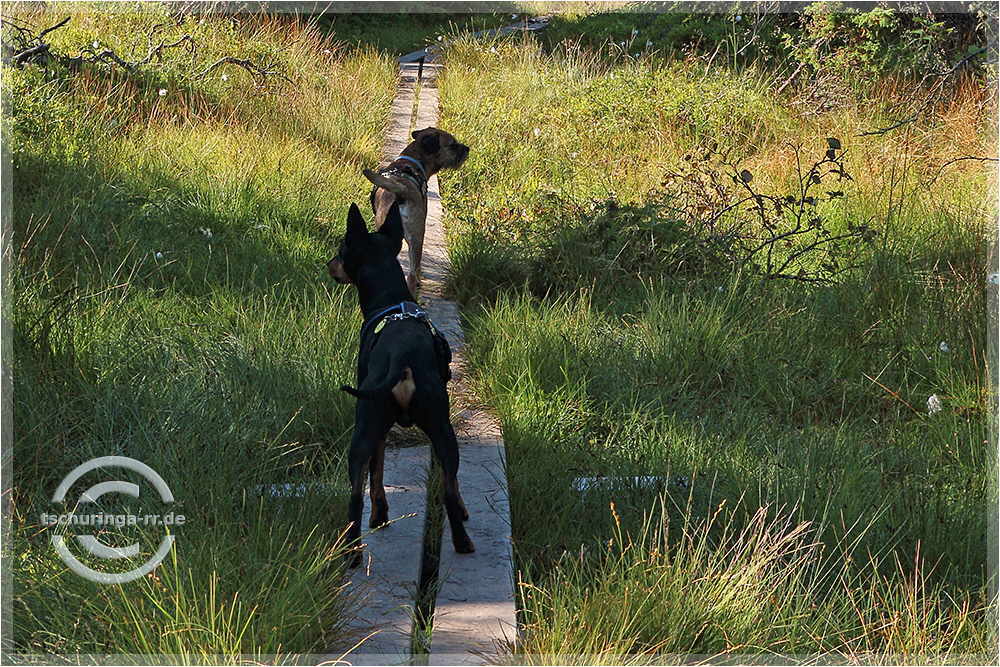 | Lennox sieht den Otter noch früher und gibt Vollgas. Gsd. ist er an der Leine. | |||