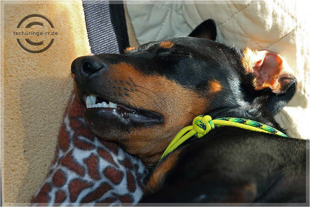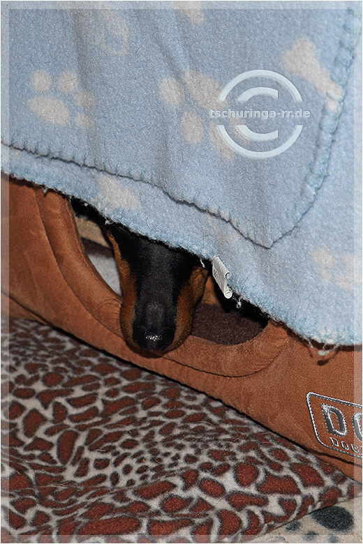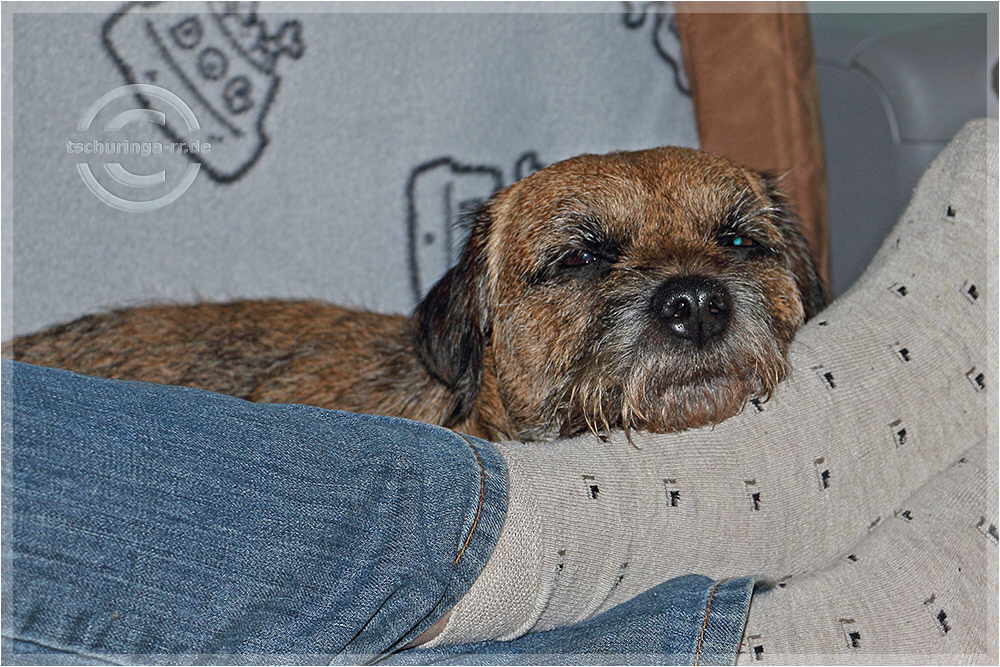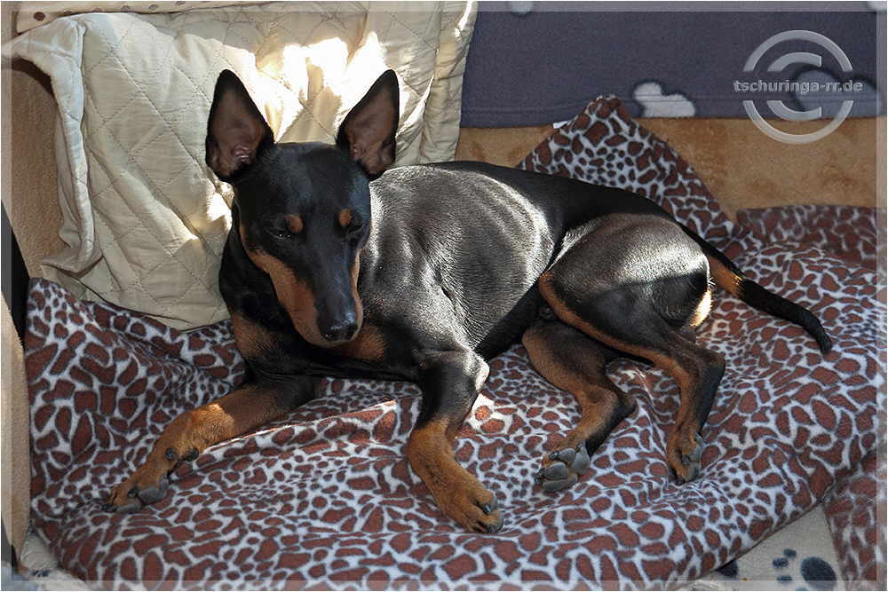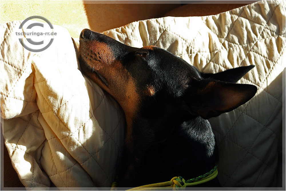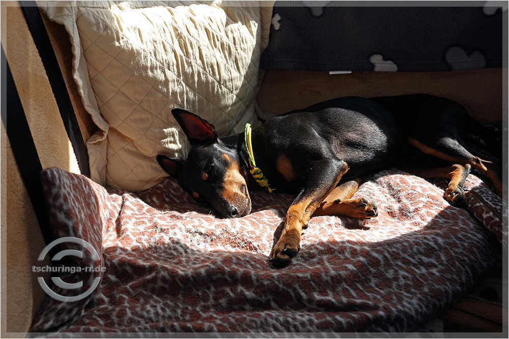 | Wo immer ein paar Sonnenstrahlen ins Womo dringen ist Lennox zu finden. | ||