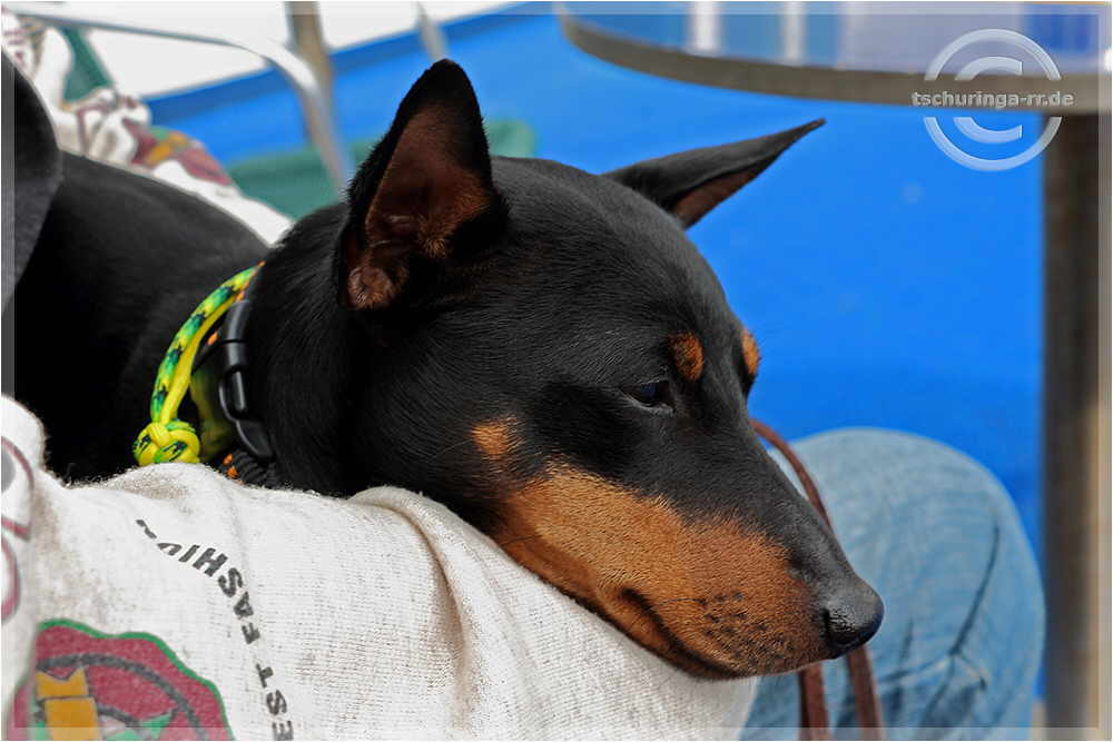 | Diese Haltung ist der Grund, warum der Zwerg an der Leine ist... | ||