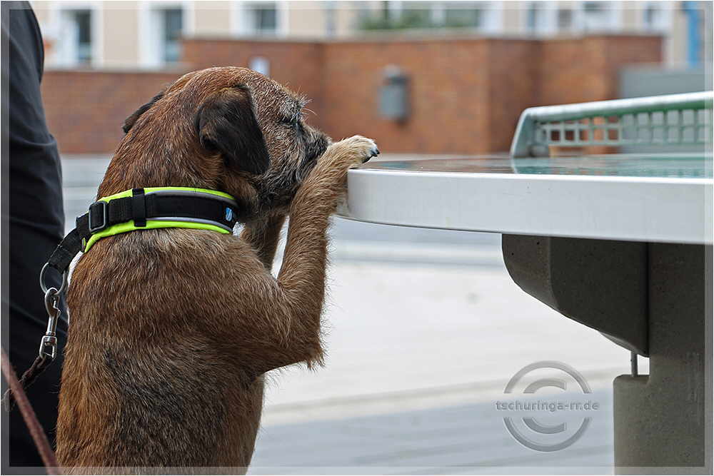 'Ne runde Tischtennisplatte. Da sind die Jungs aber neugierig. | ||