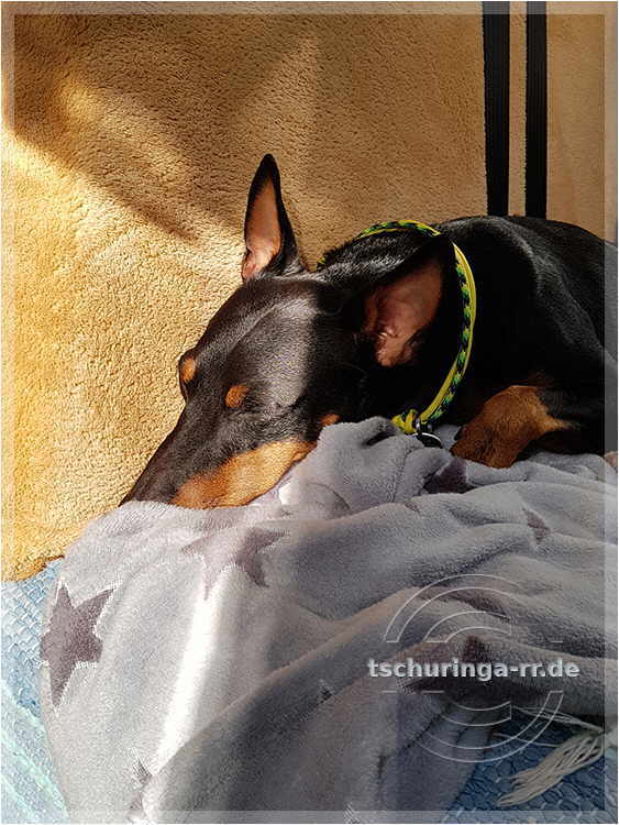 | Mittagssonne genießen, während Herrchen und Frauchen ihre Brötchen vernichten | |||