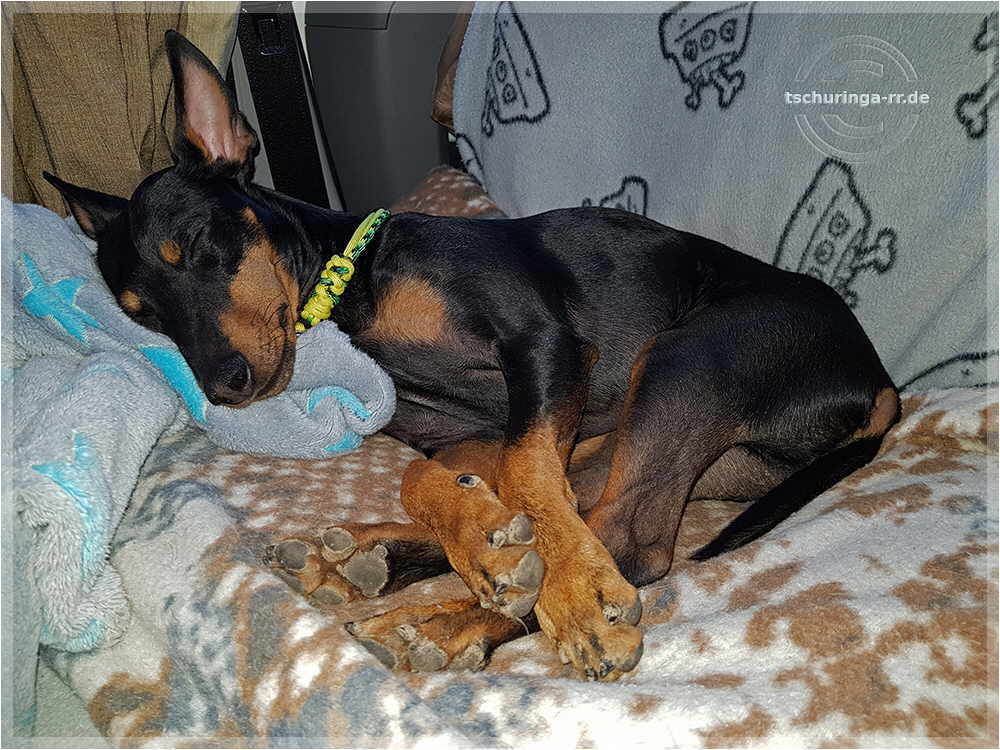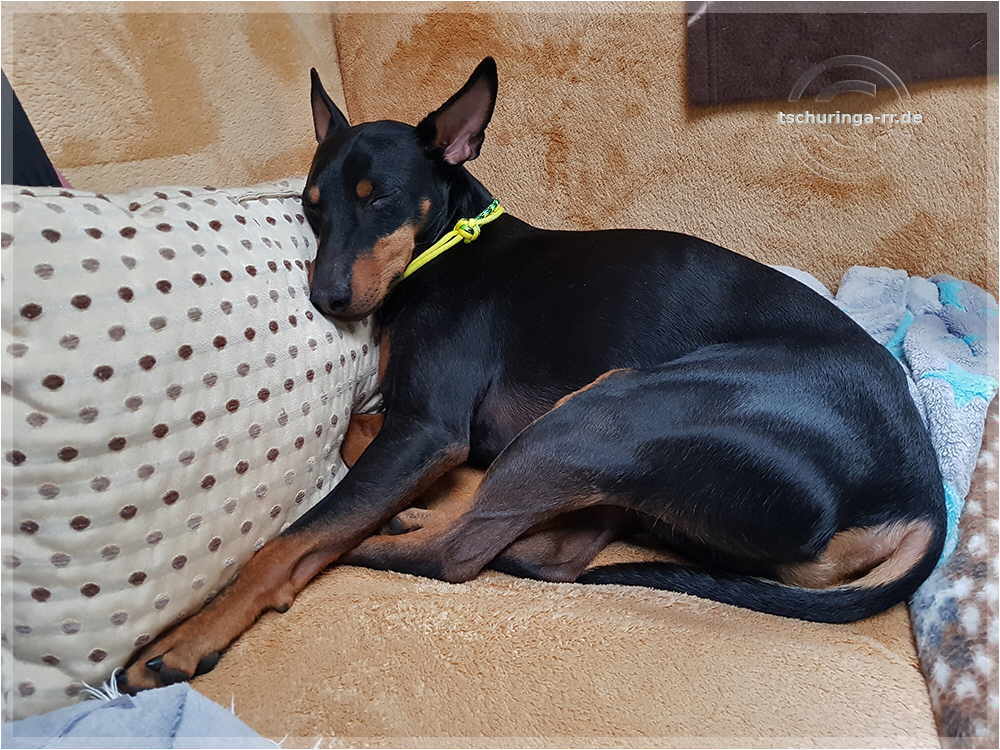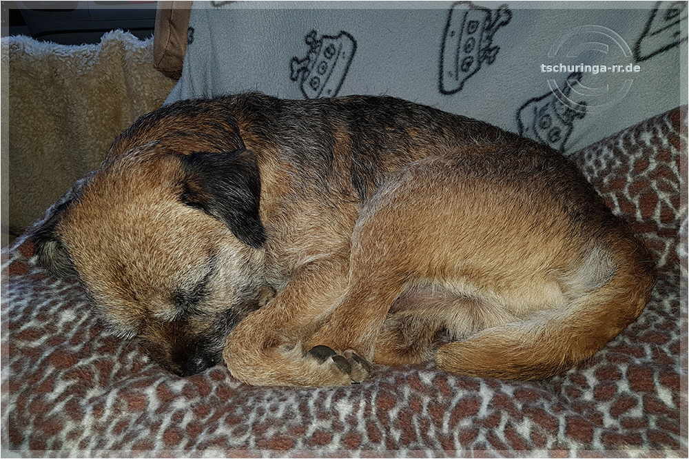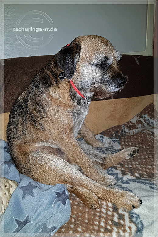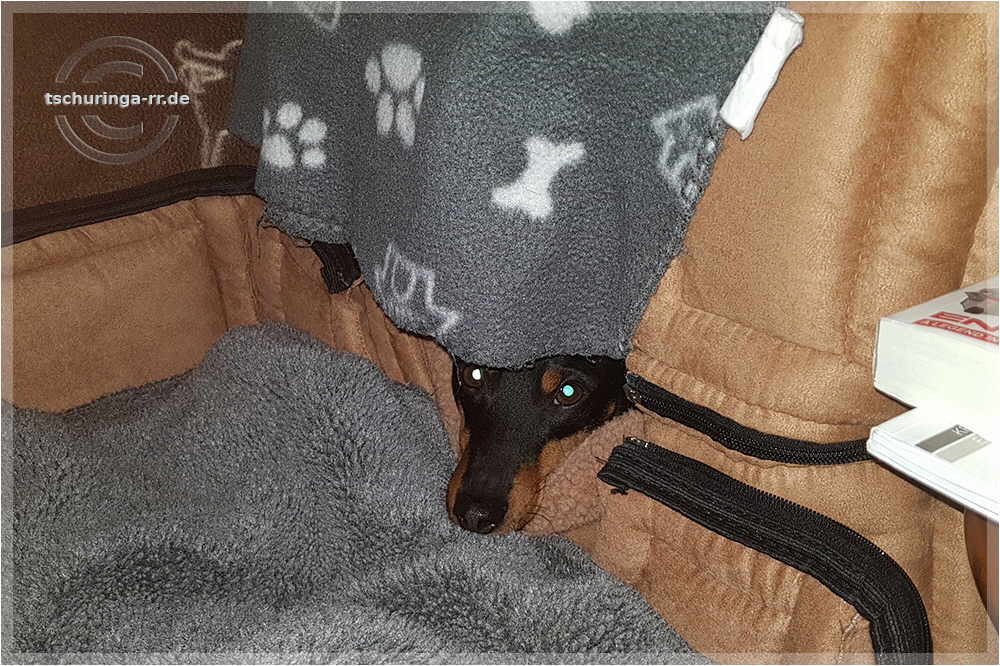 | Der einzige Sonnenplatz ist auf Herrchens Oberschenkel...