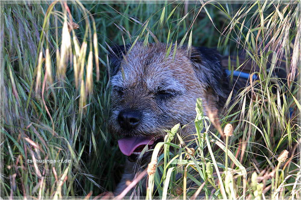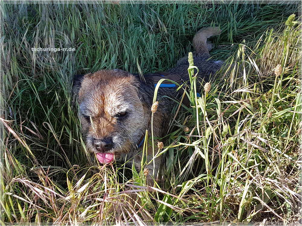 | Bäuchlings im Schatten im Gras. So lässt es sich einigermaßen aushalten | |||