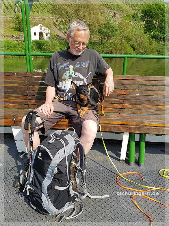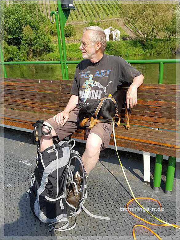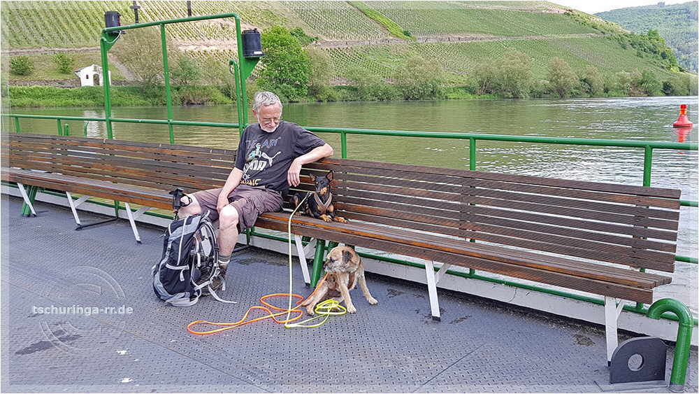 | Auf der Fähre nimmt Lennox direkt auf der Bank Platz, um dann festzustellen,.... | |||