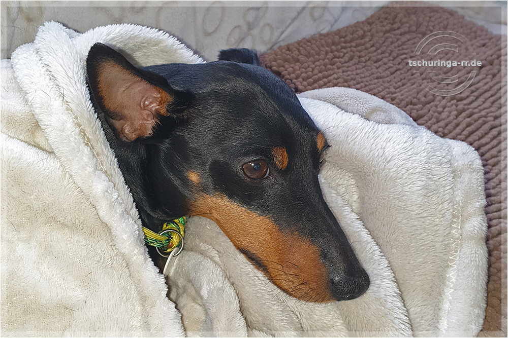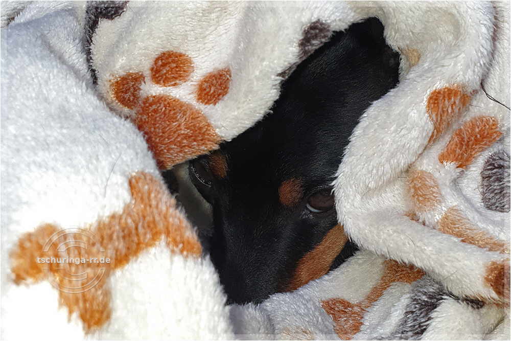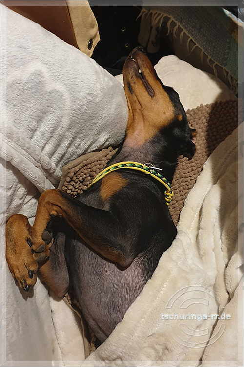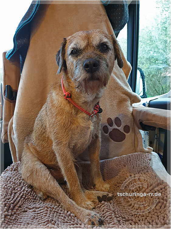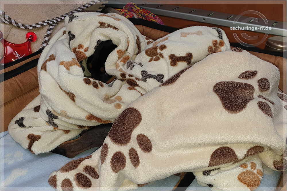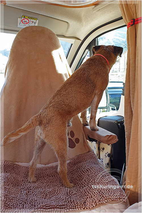 Lennox hat den einzigen sonnigen Platz im Womo gefunden. Am Fußende meines Bettes. .