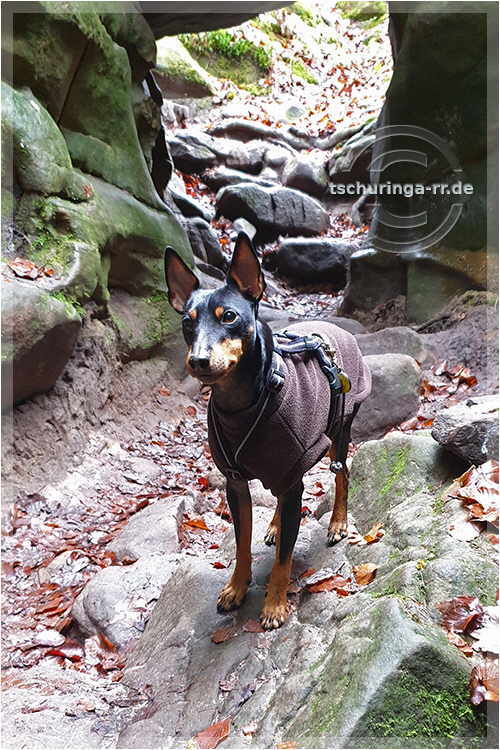 Kleiner schwarzer Teufel auf dem Teufelspfad durch die Teufelsschlucht.
