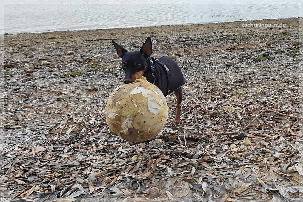 Lennox hat einen Ball gefunden, der fast so groß ist, wie er selber