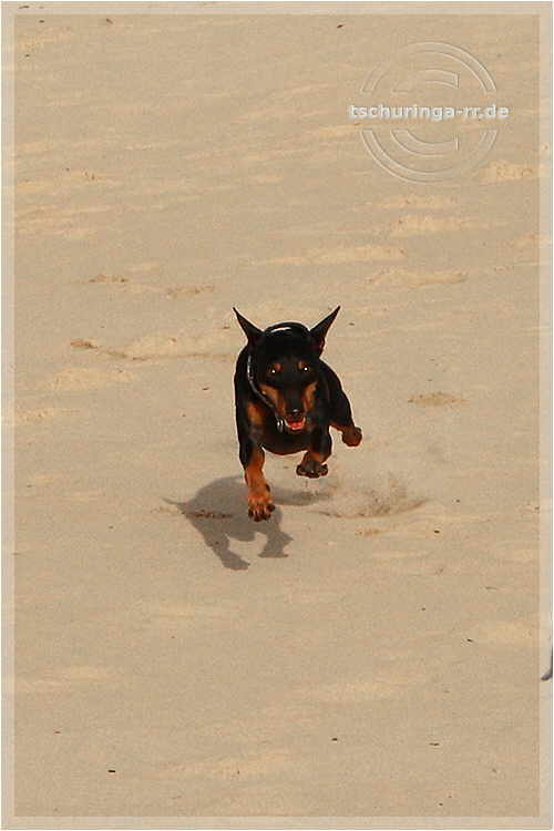 Heute sind es 21° und Yukon freut sich ins Wasser zu können