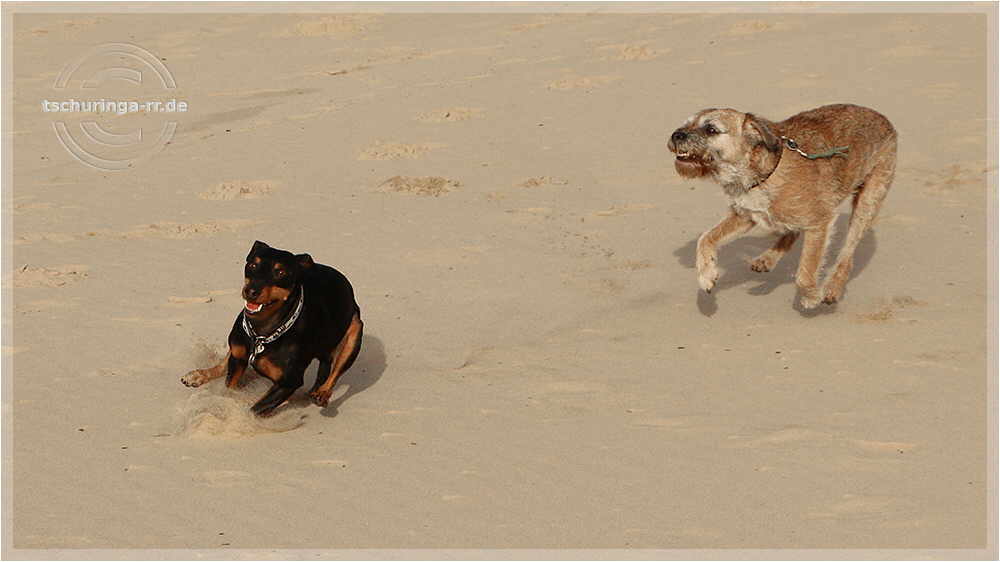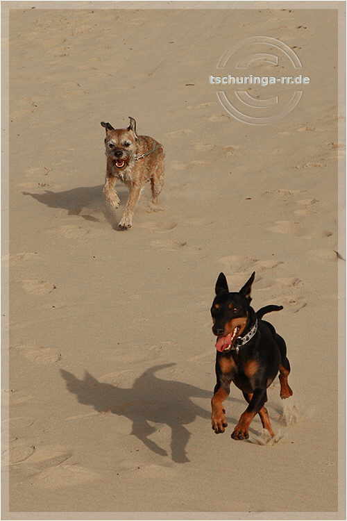 Yukon: "Looooohos, tooooben." Lennox: "Frauchen, der spinnt"