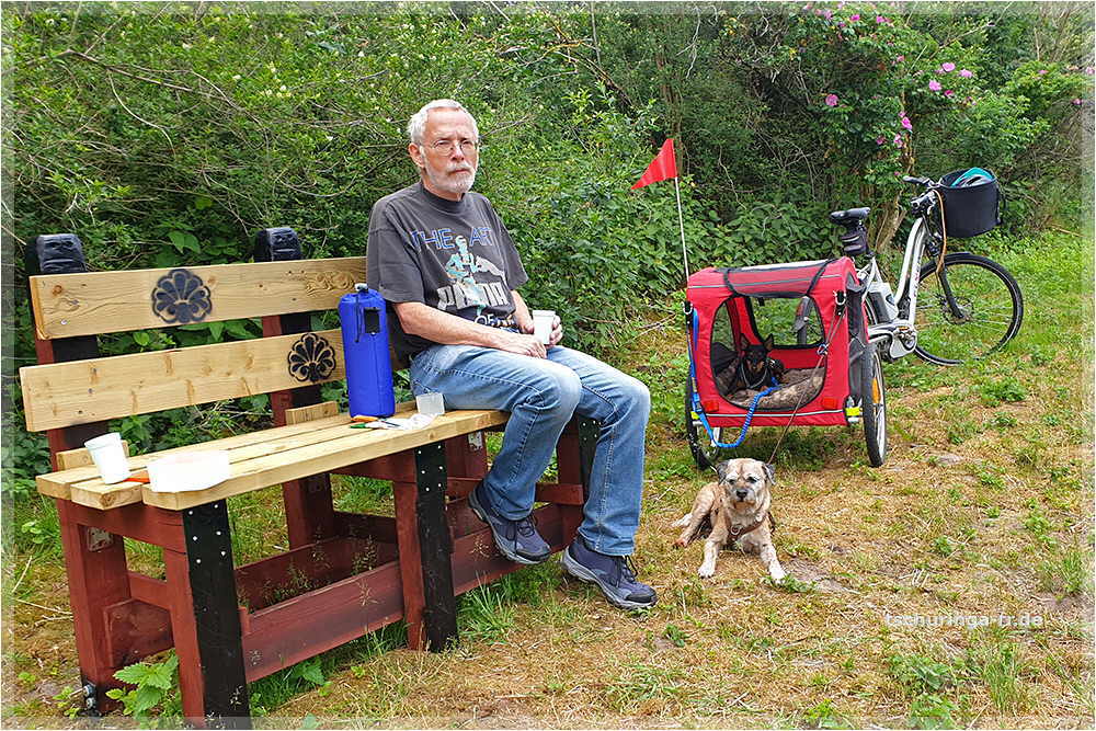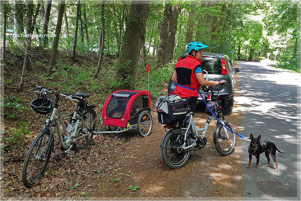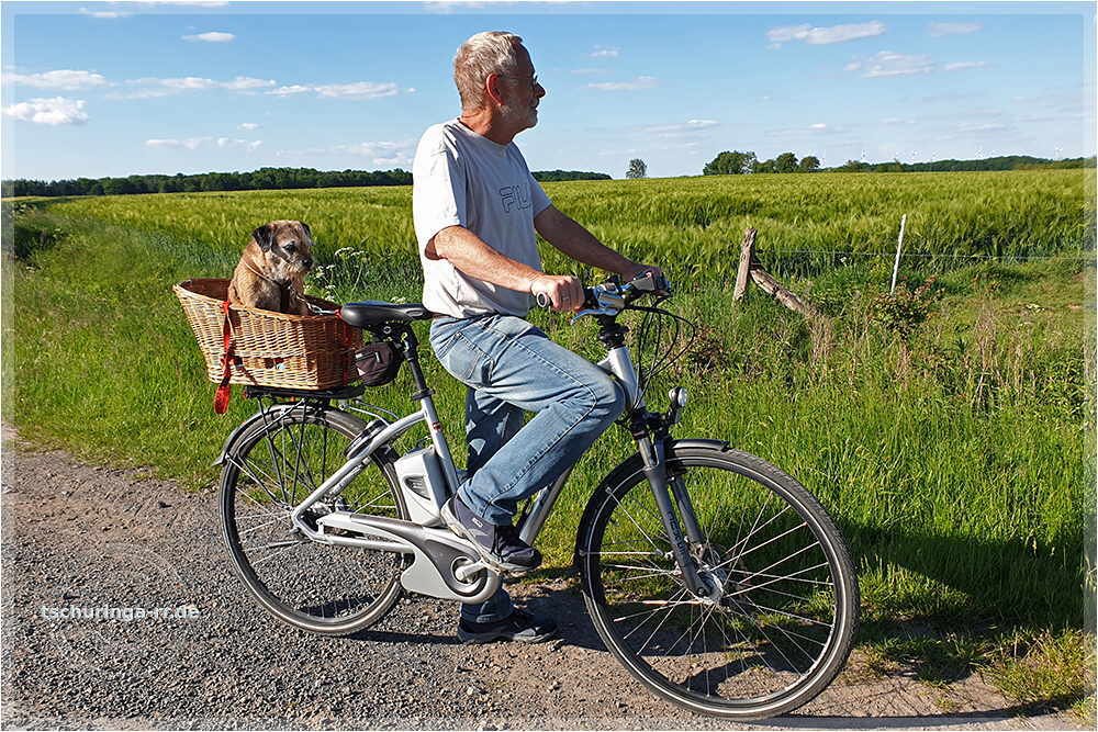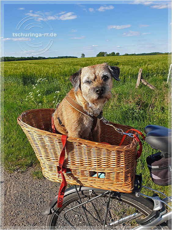 Radtour mit Korb. Unterwegs ist Yukon sogar zwei Mal einen Kilometer am Rad frei mitgelaufen. WAAAHNSINN!!! |