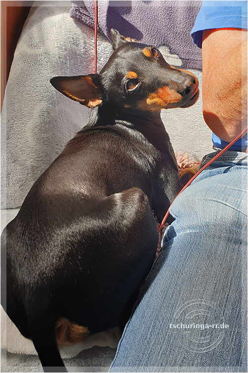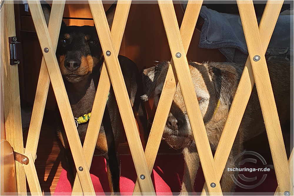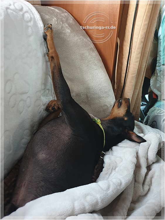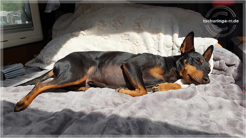 Nur ein einziger Platz mit Sonne im Womo und da sitzt Herrchen drauf. Da hat der kleine Mann ziemlichen Frust. |