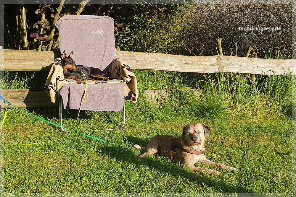 Lennox genießt seinen Campingstuhl, incl. Decke. . |