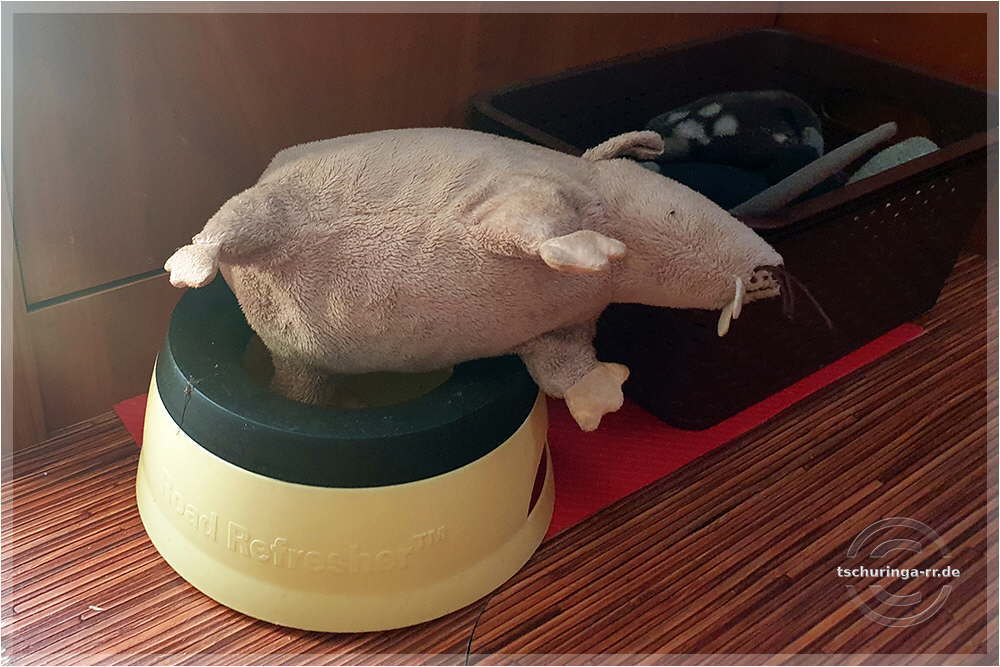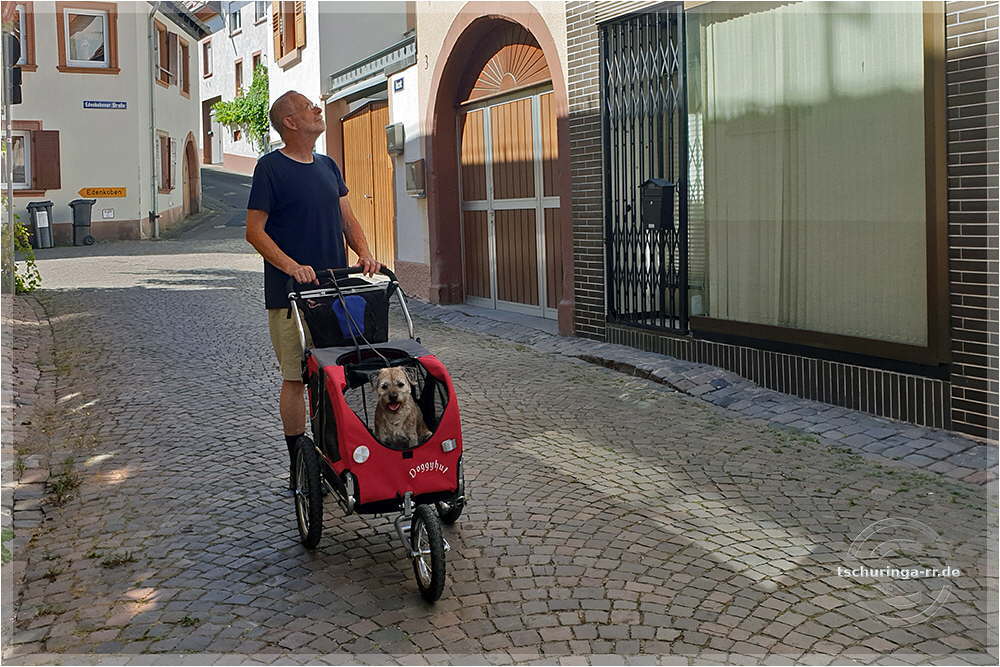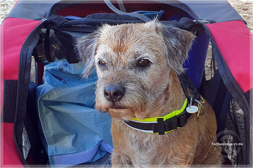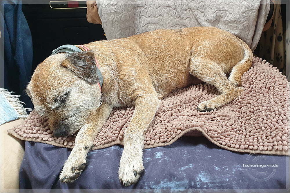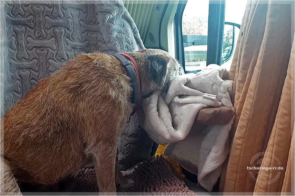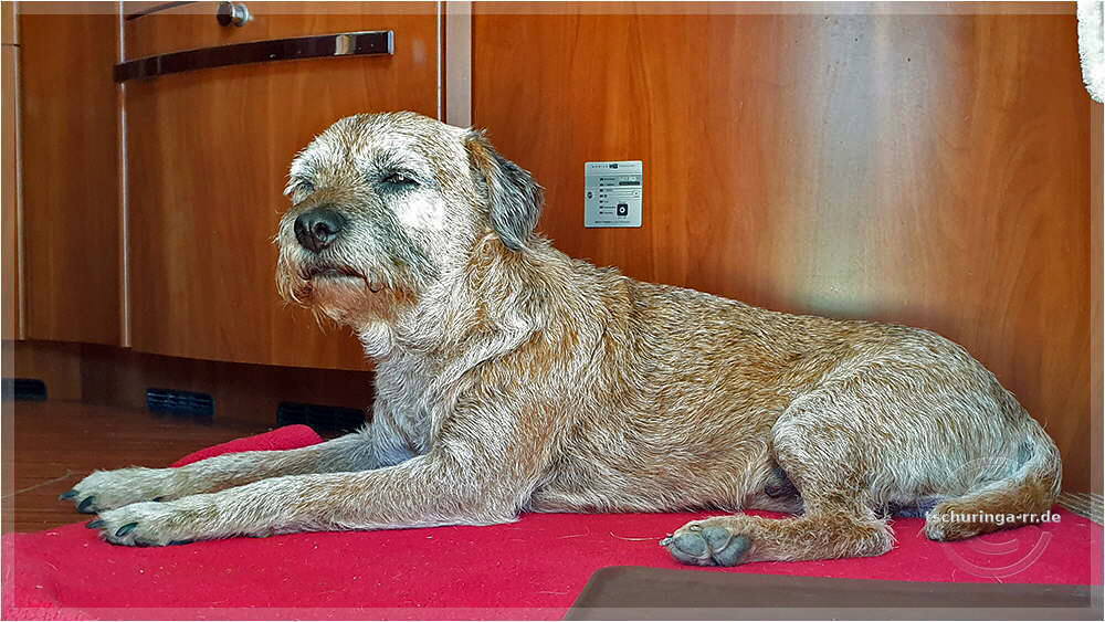 Die meiste Zeit verbringt er aber heute vor der offenen Womotür. |