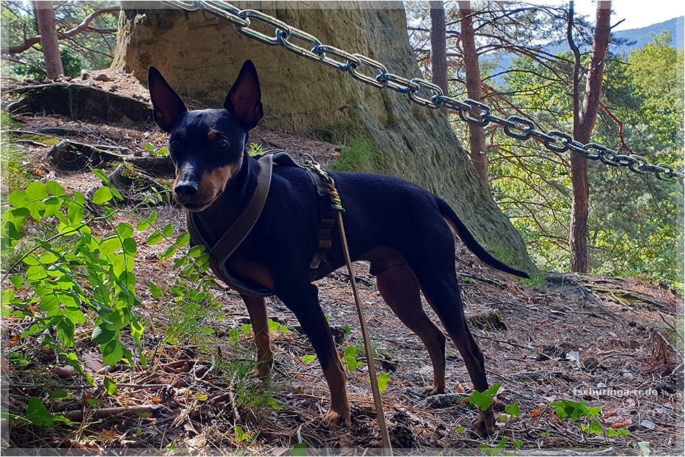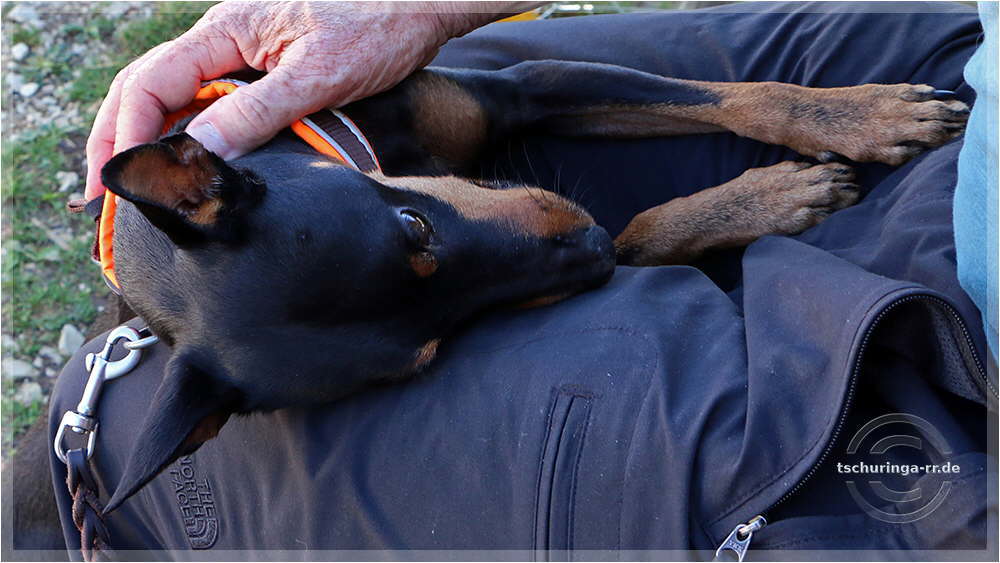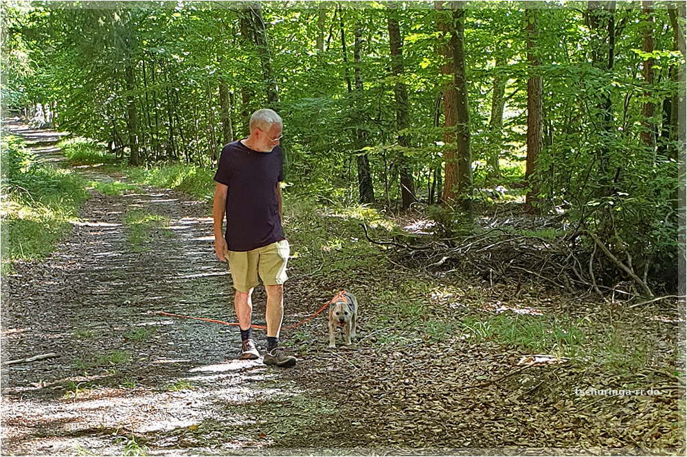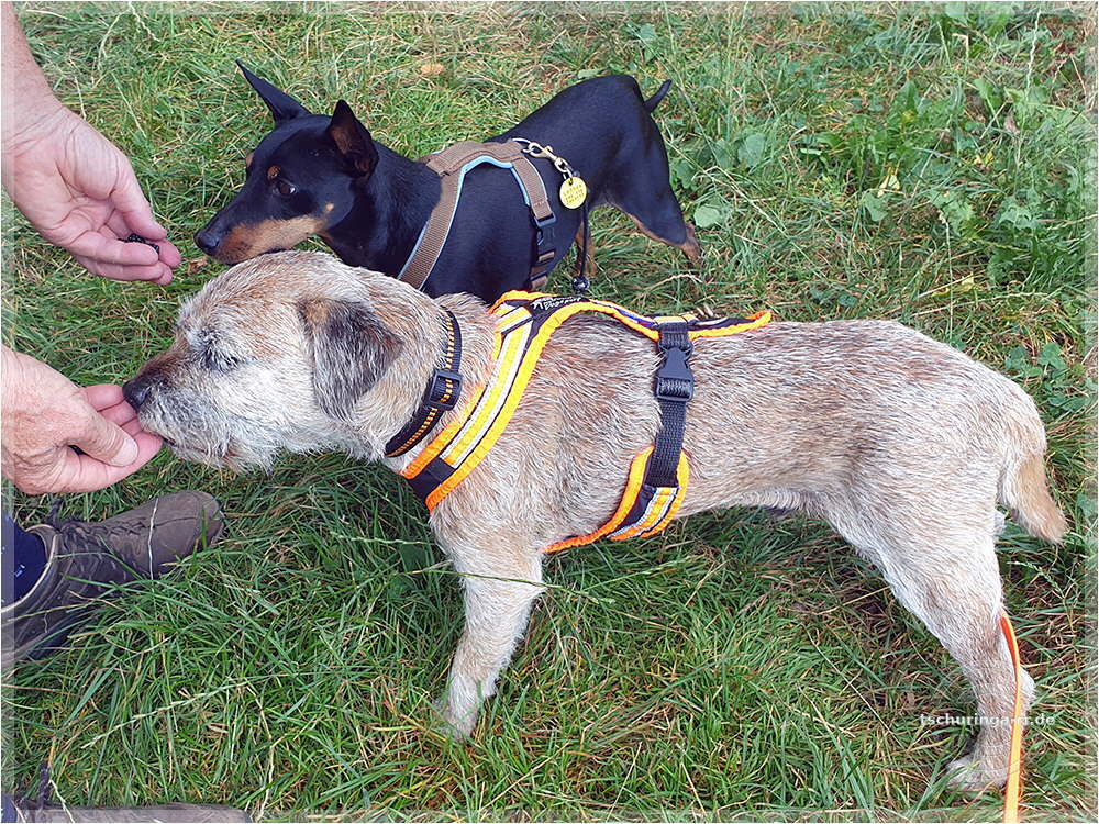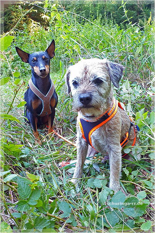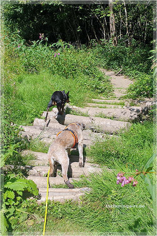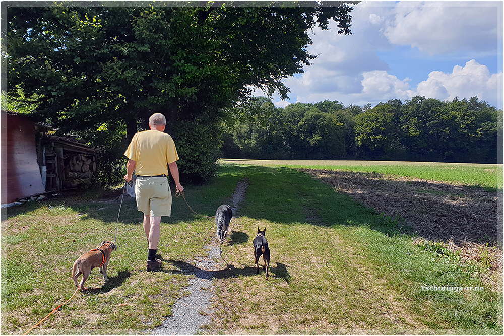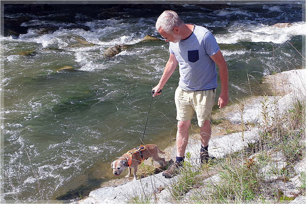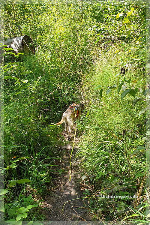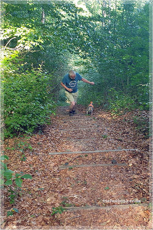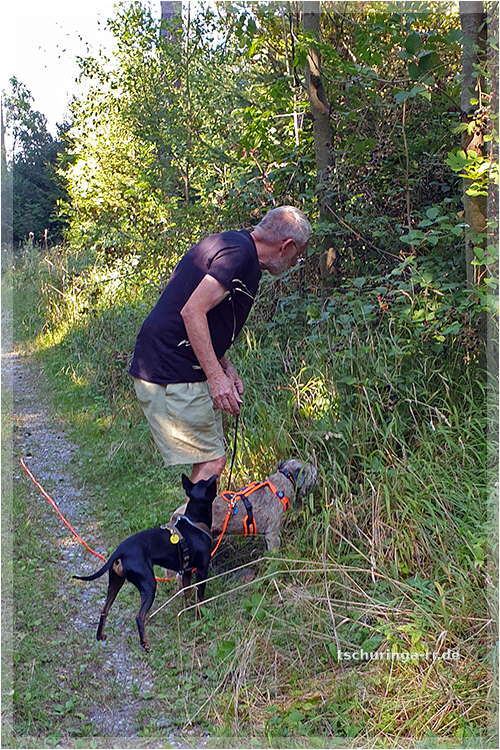 Friedbert begrenzt Yukon, damit der nicht auf dem Schotter läuft |