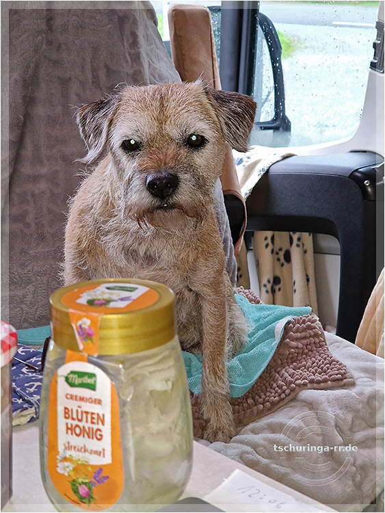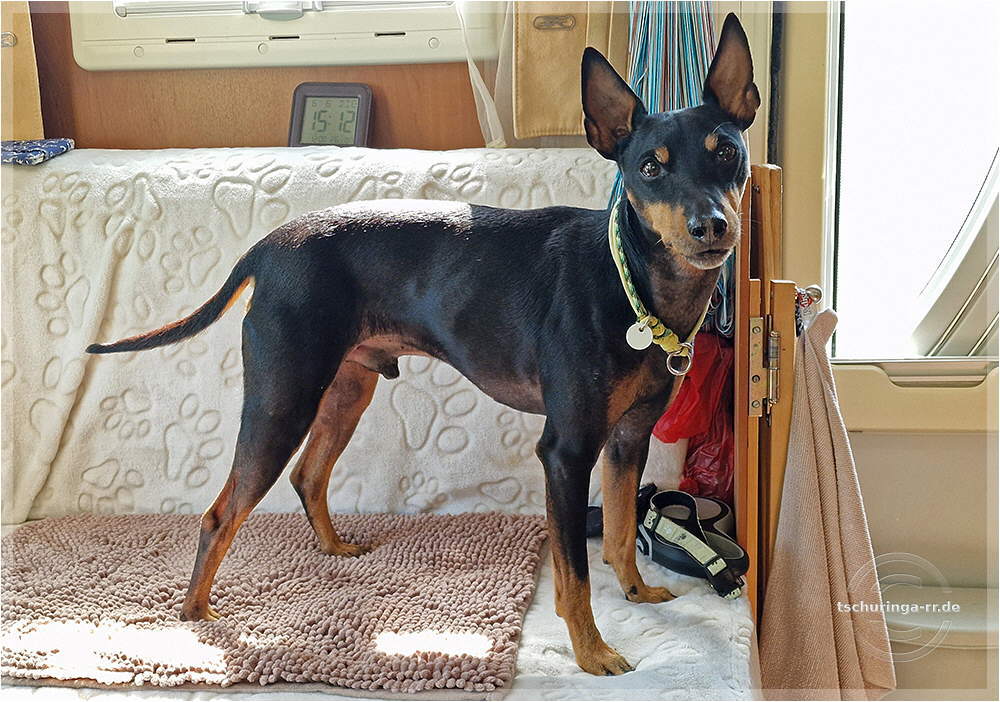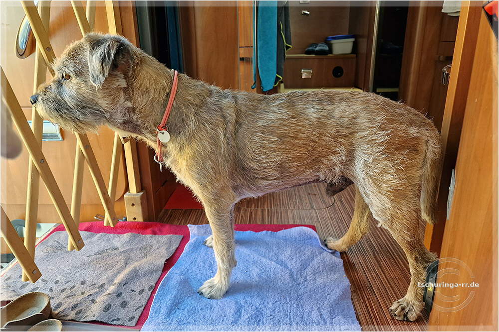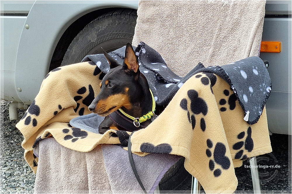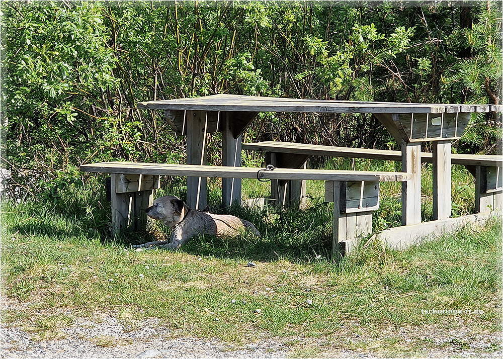 Eigentlich soll er unter dem Womo im Schatten liegen. |