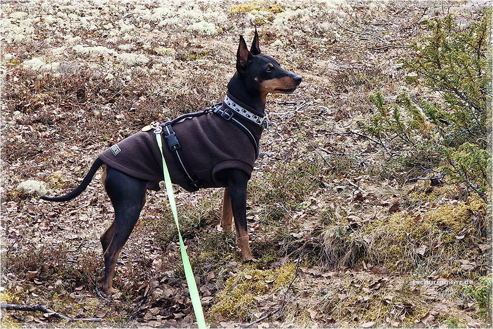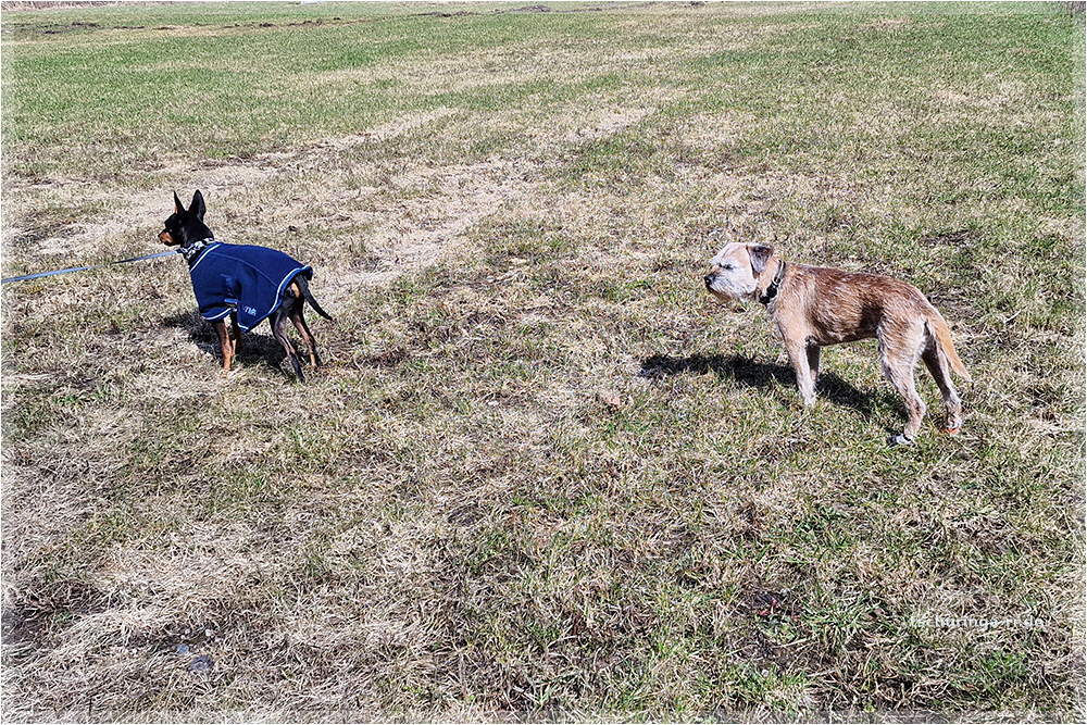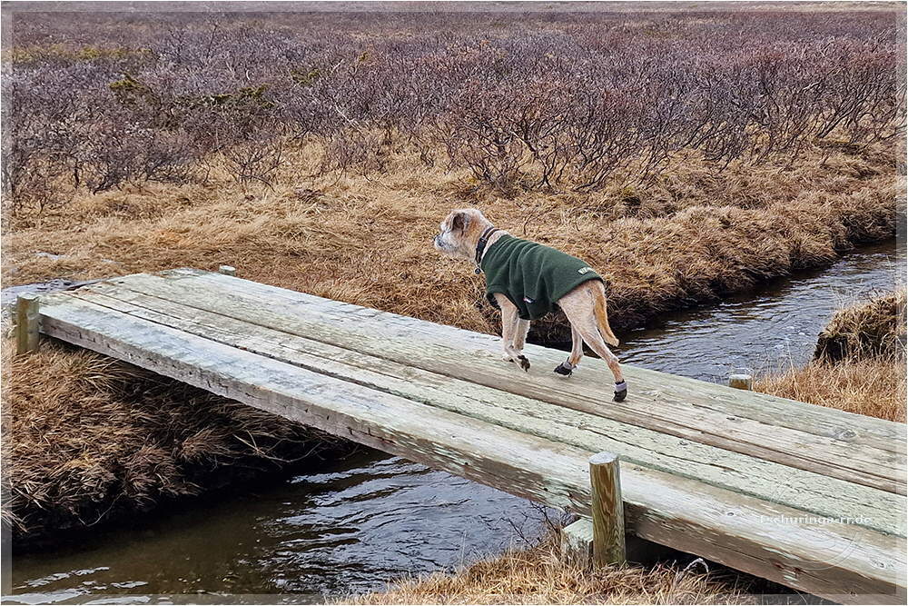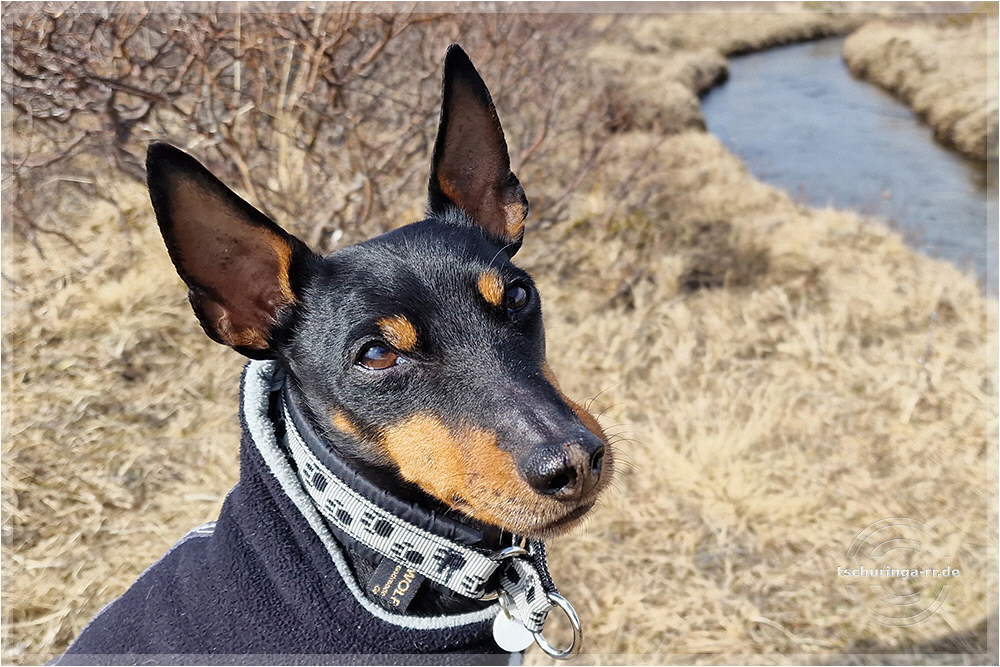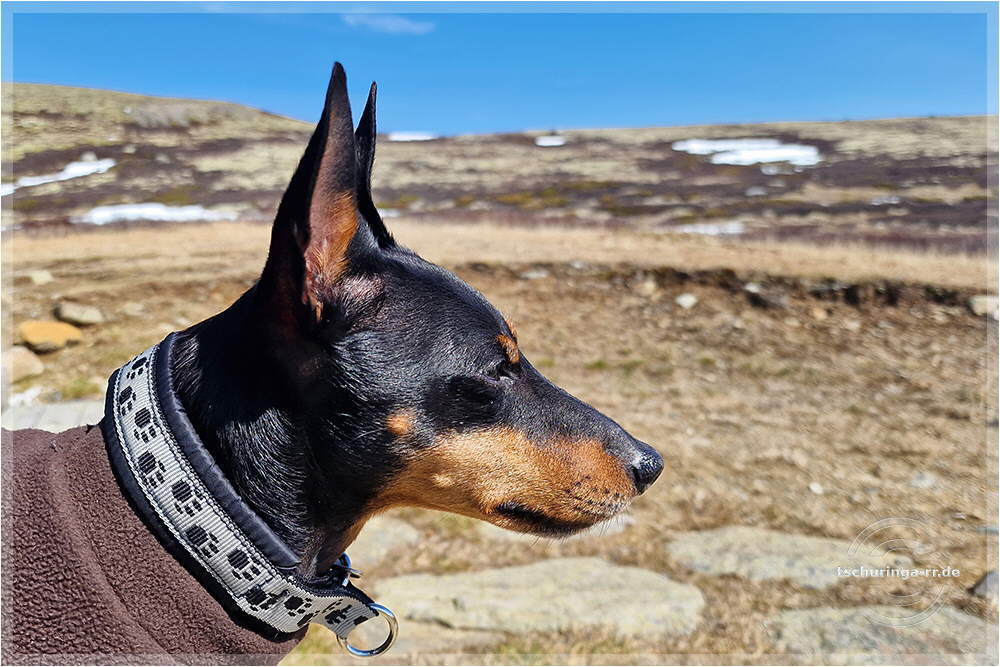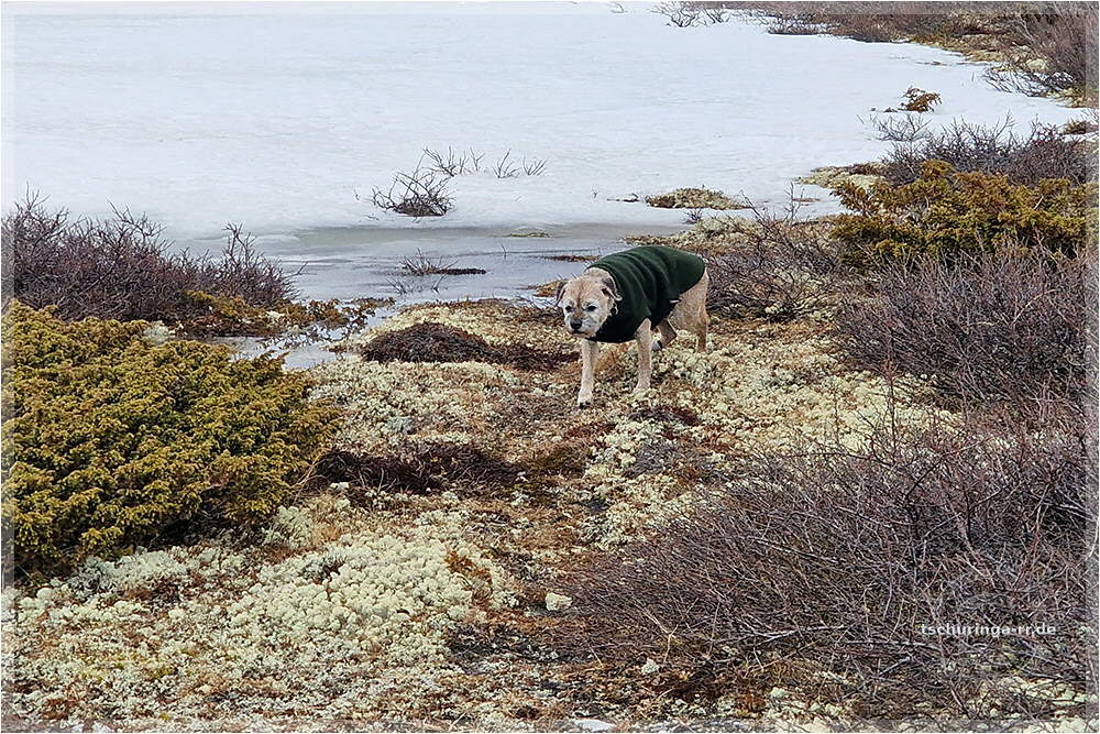 Das ist nach Lennox Geschmack. Sonnig, windstill und noch einen kuscheligen Mantel an. |