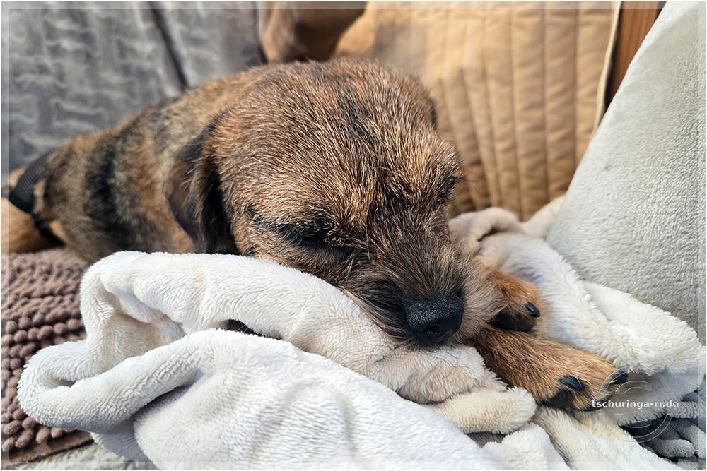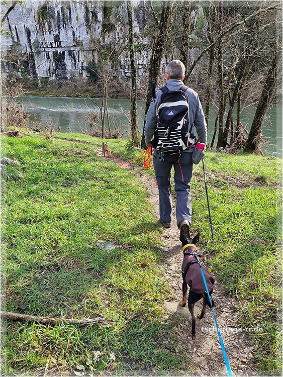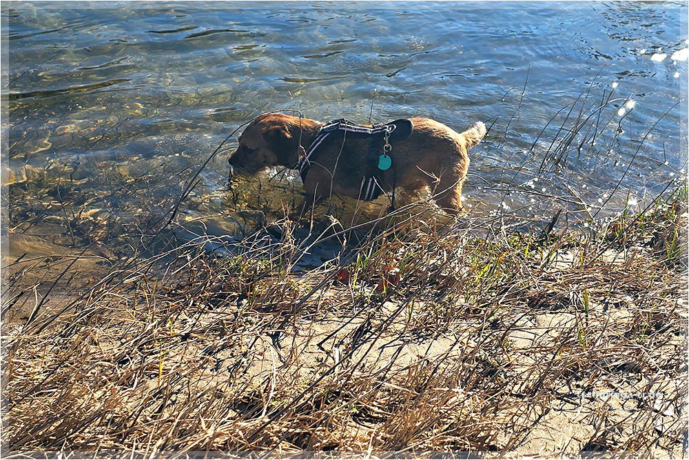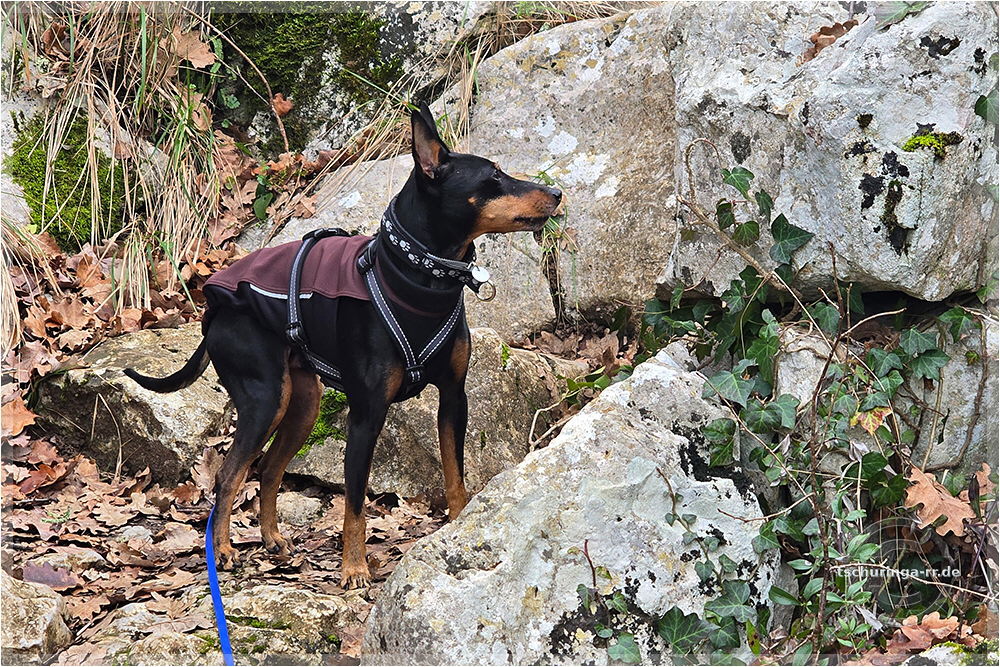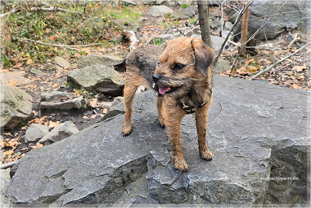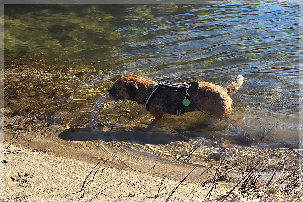 Er läuft inzwischen wieder recht gut mit. Schuhe braucht er aber noch, weil er sich sonst die Pfoten aufscheuert, denn er schleift noch ordentlich damit über den Boden. |