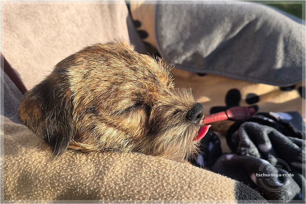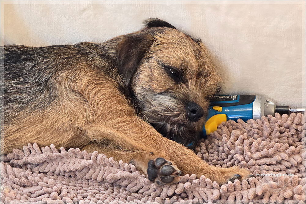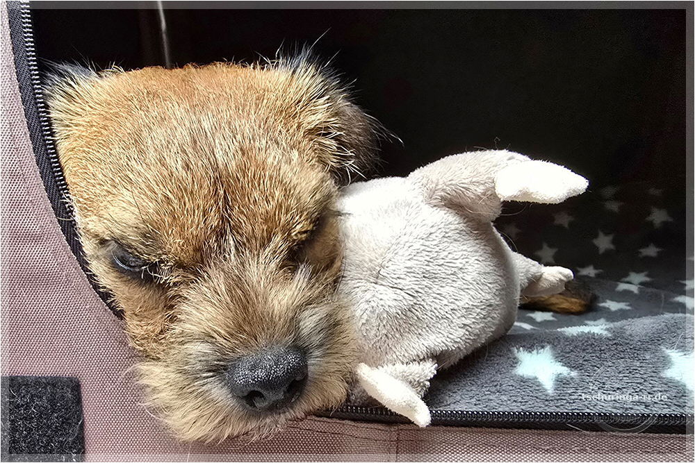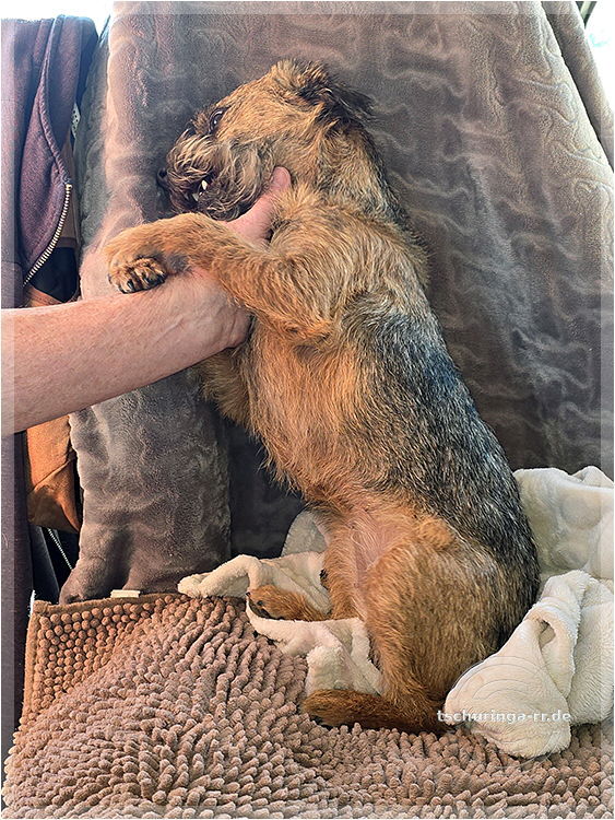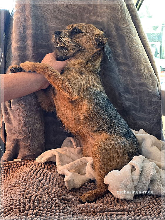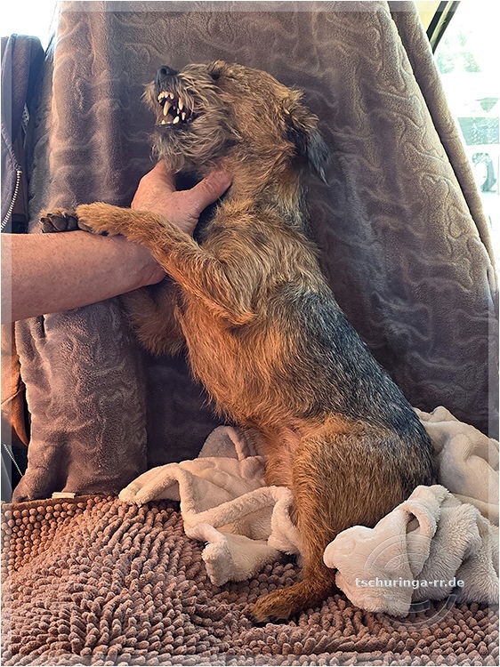 Herrchen hat noch alle Finger. Ehrlich. Una hat übrigens nur gegähnt. |