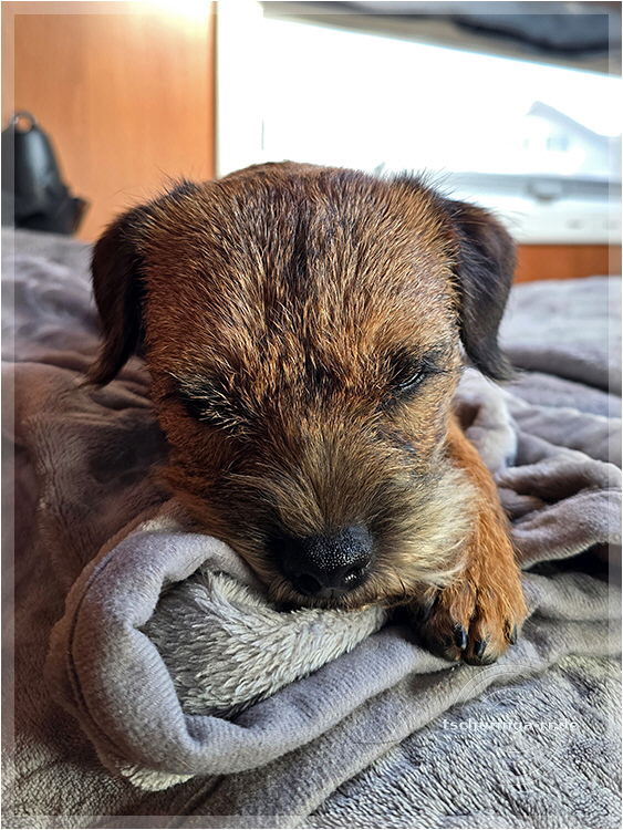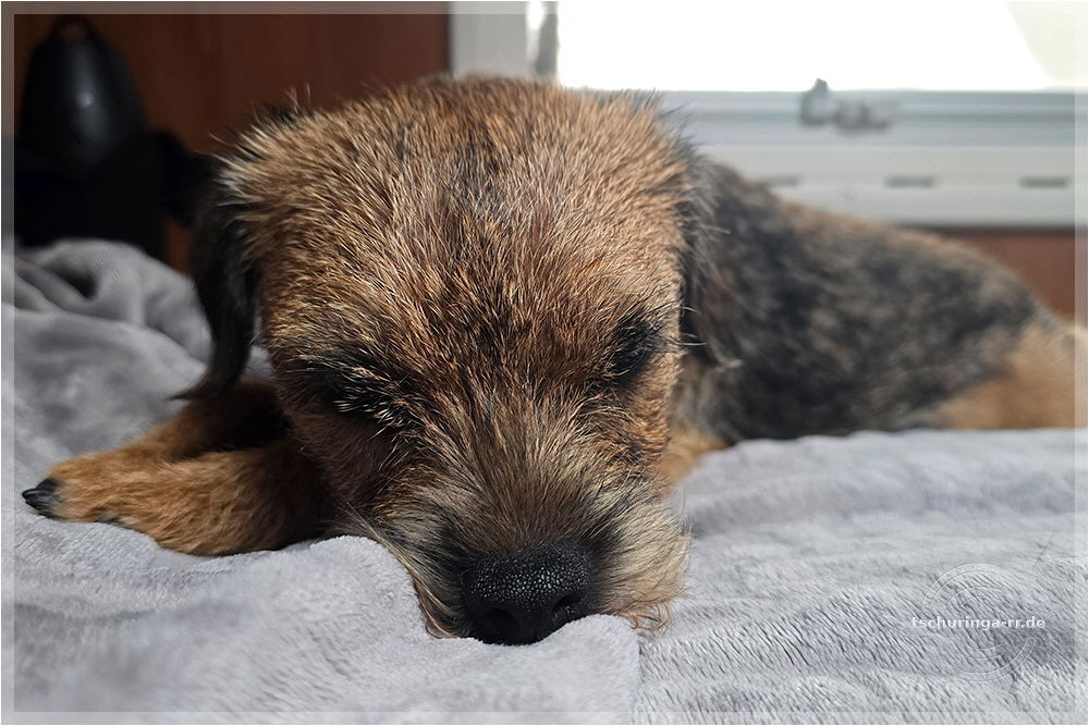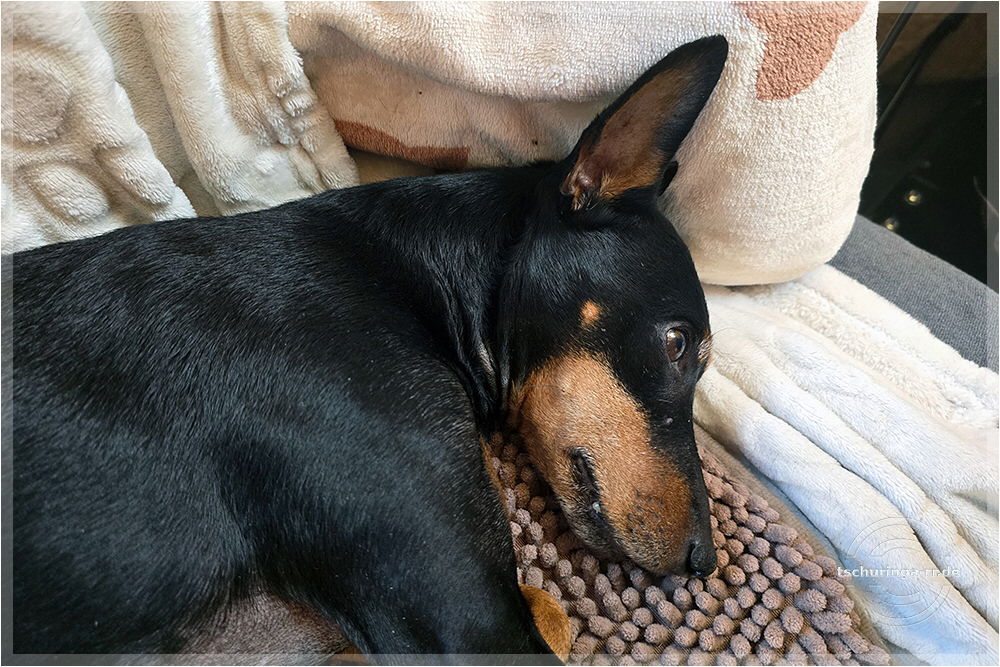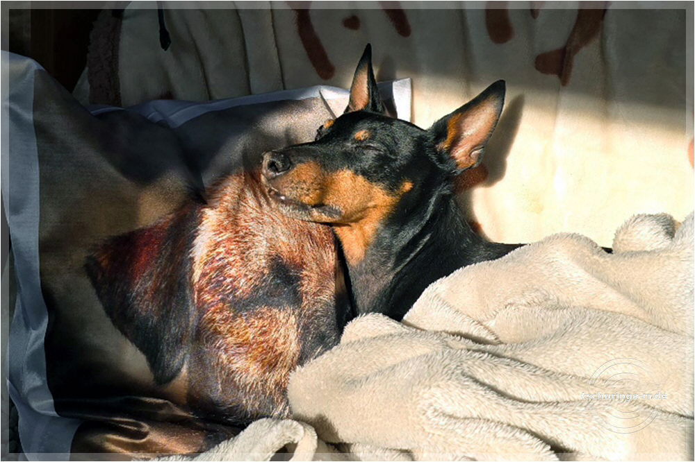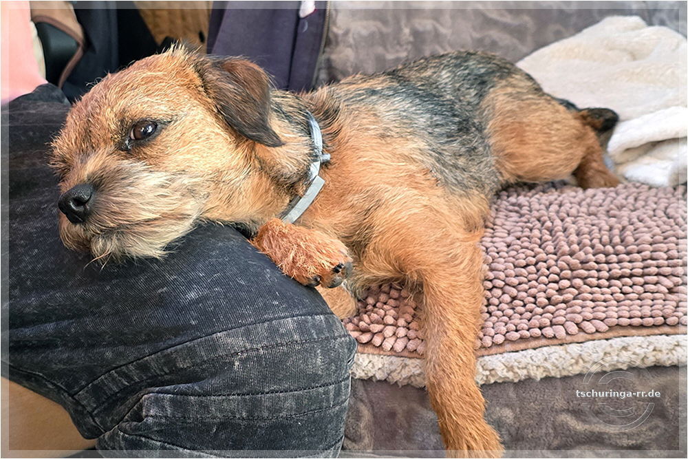 Herrchen hat noch alle Finger. Ehrlich. Una hat übrigens nur gegähnt. |