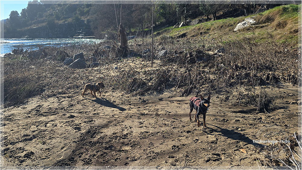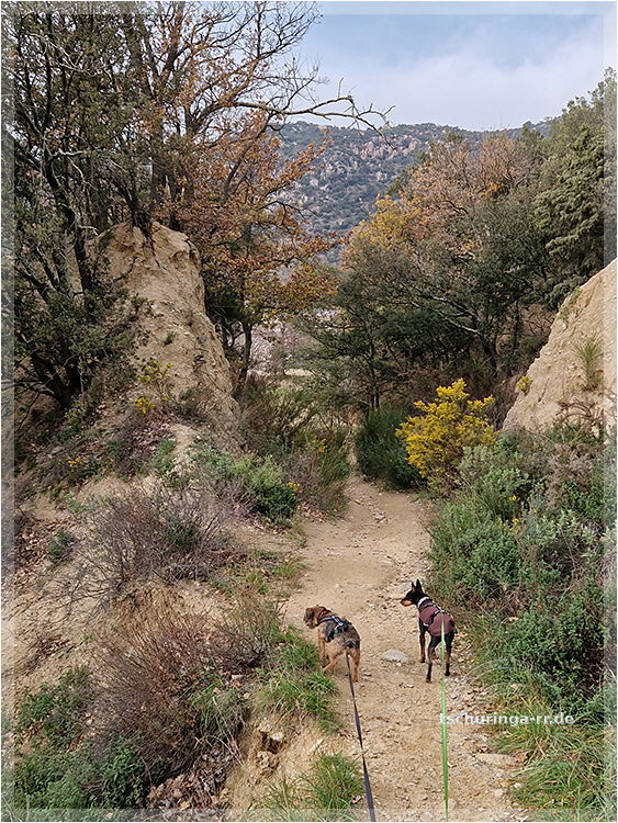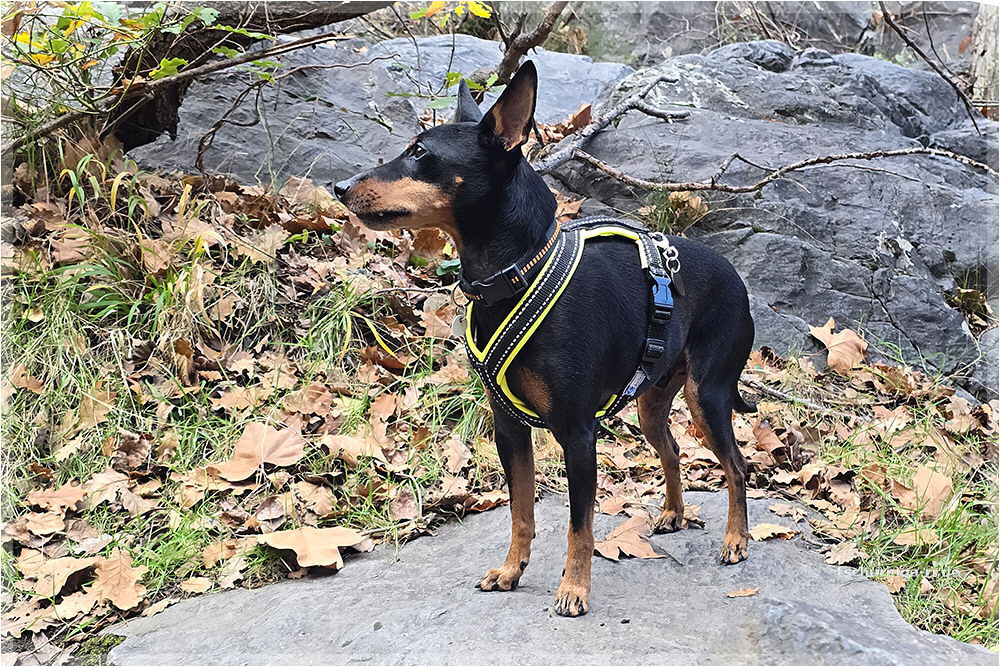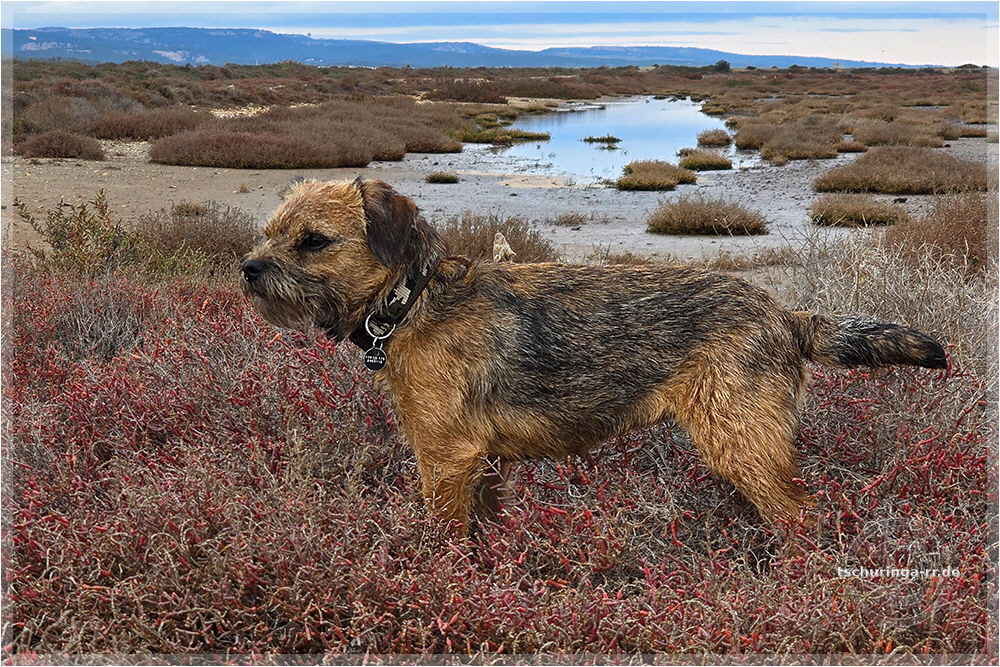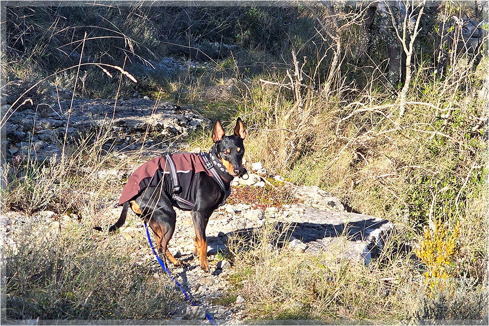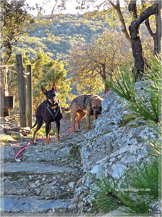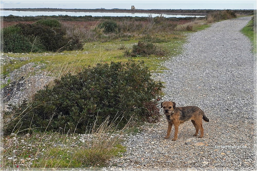 Lennox wartet in der Sonne, während wir nach dem Weg suchen |