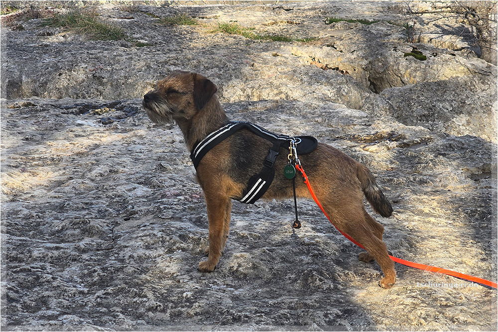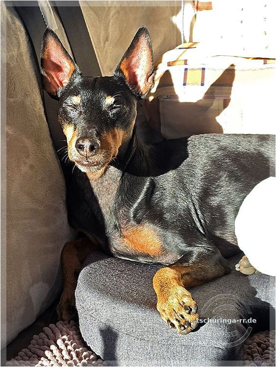 Una ist es ziemlich egal wie und wo sie sitzt, wenn sie auf das fotografierende Frauchen warten muss. |
