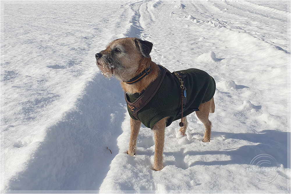 | Yukon genießt die Wanderungen durch den Schnee | ||