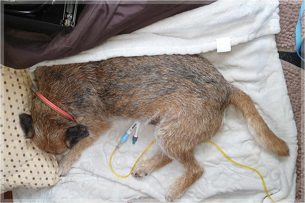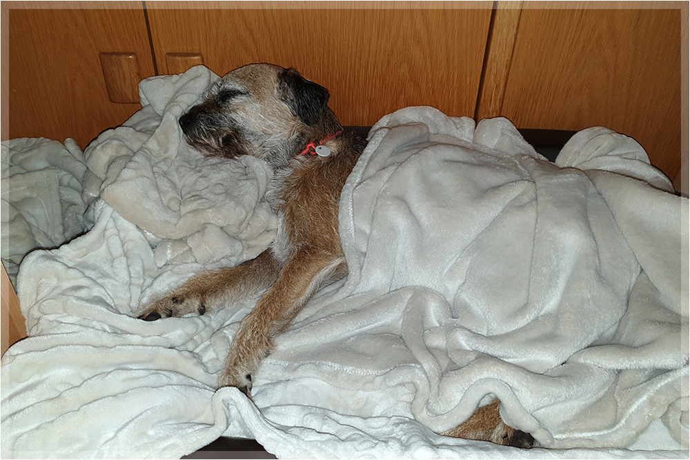 | Yukon wieder im Wohnmobil auf seinem Krankenlager | ||