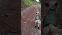 | Yukon ist es zu warm. Er hat keine Lust auf Training, noch dazu mit den verhassten "Strapsen". | ||