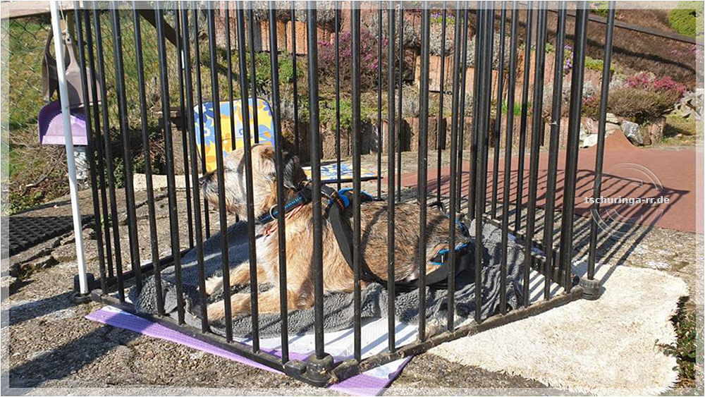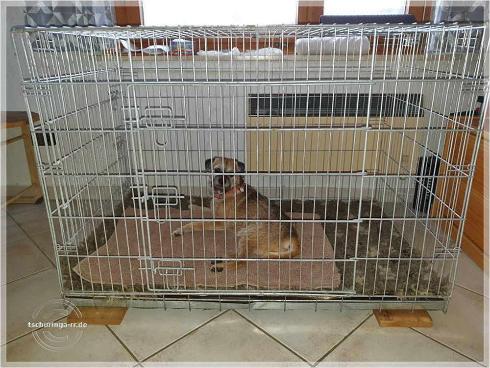 Unterbringung im Zimmerkennel. So können wir beruhigt meine Mutter im Pflegeheim besuchen ohne ständig an den Buben denken zu müssen. |